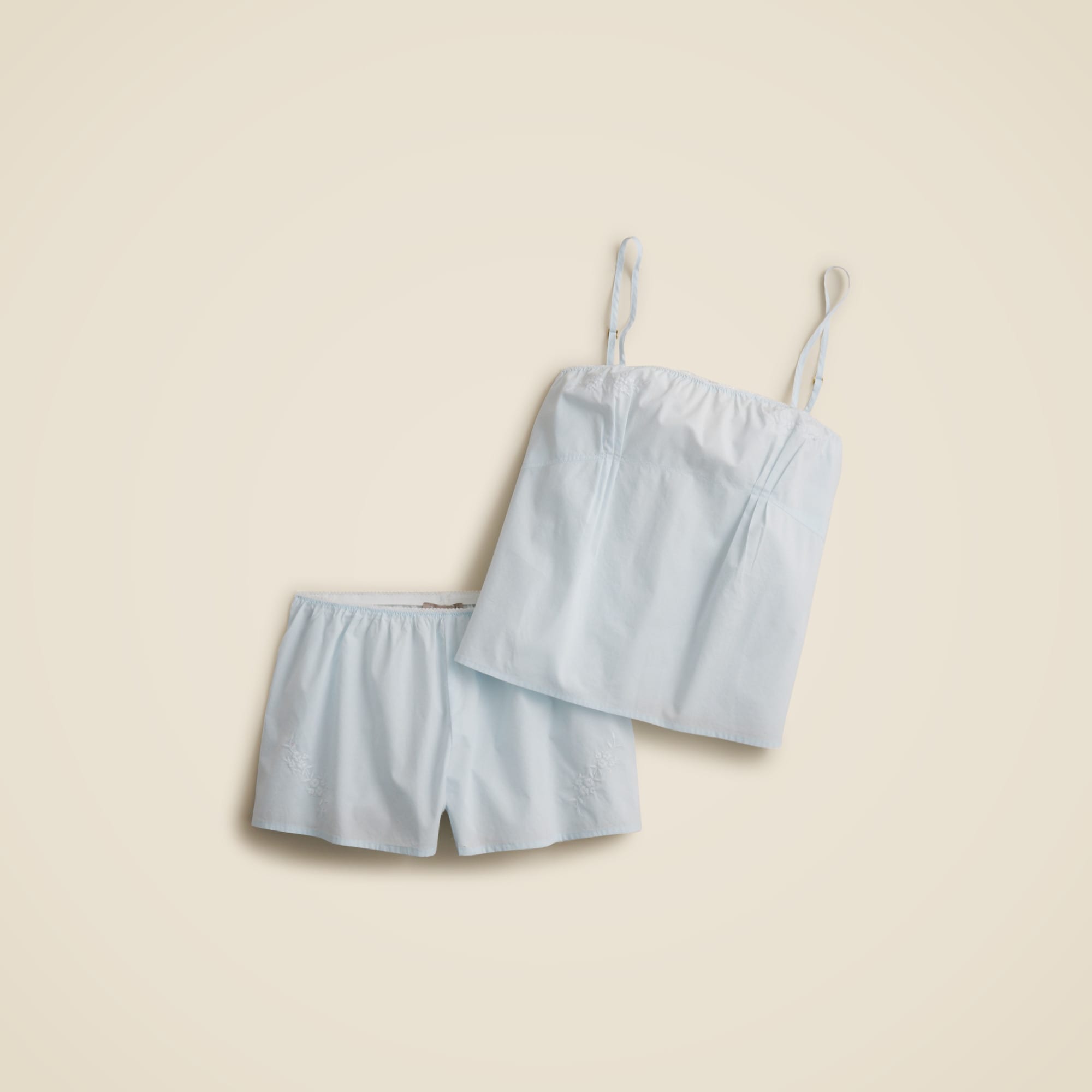 Something about a matching pj set always makes us sleep better. We updated this one with a camisole-style shirt that features floral embroidery along the top and intricate lace trims, plus an airy, relaxed short with matching details. This set is crafted from our crisp, customer-favorite cotton poplin for that just-pressed look and feel.