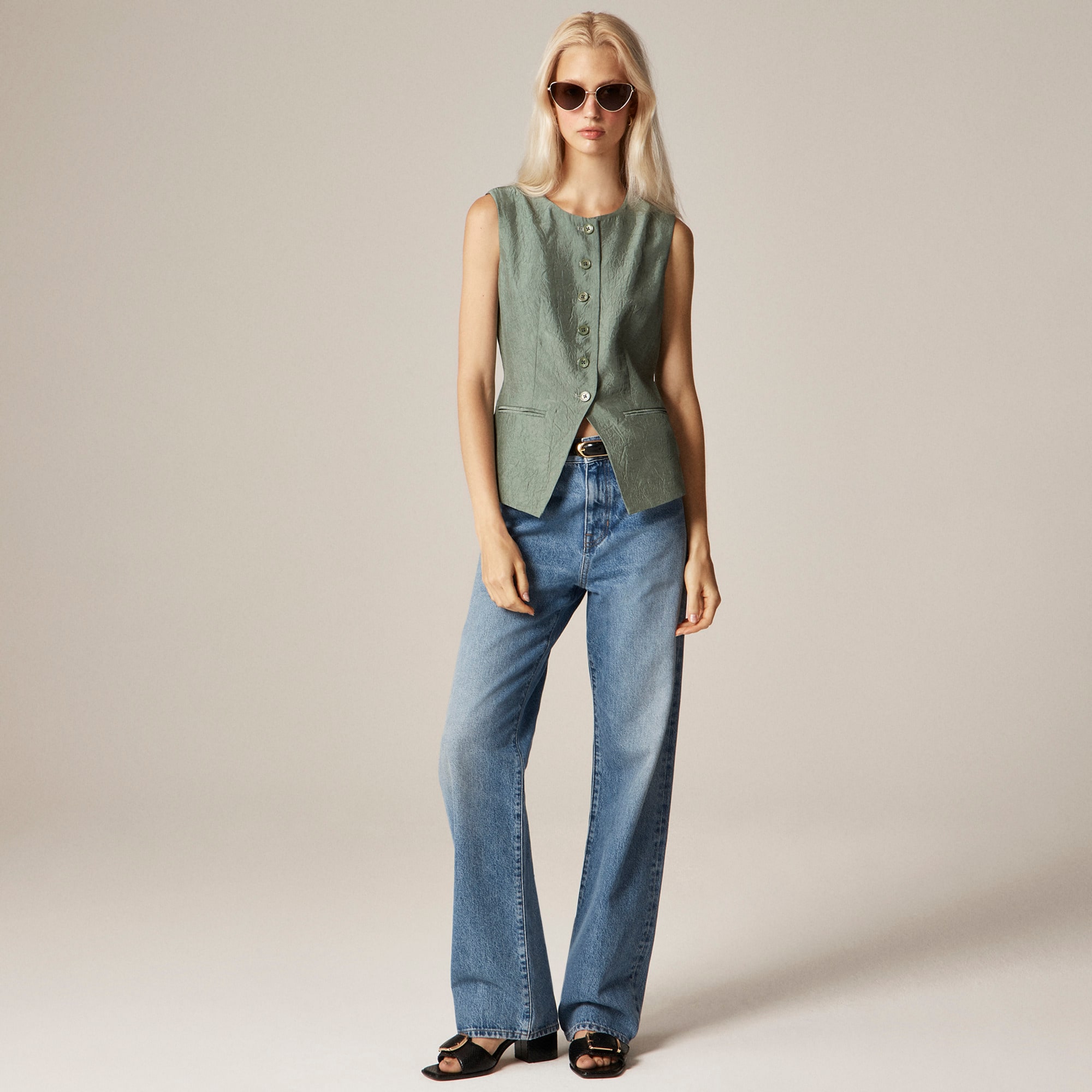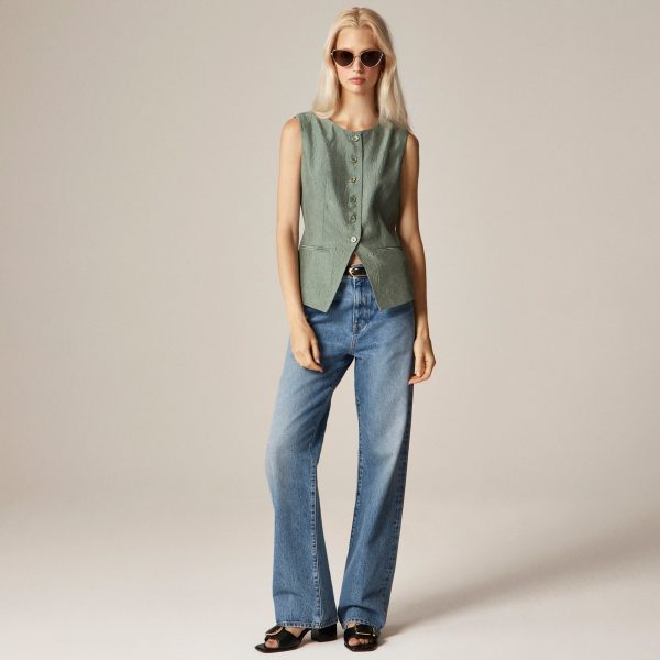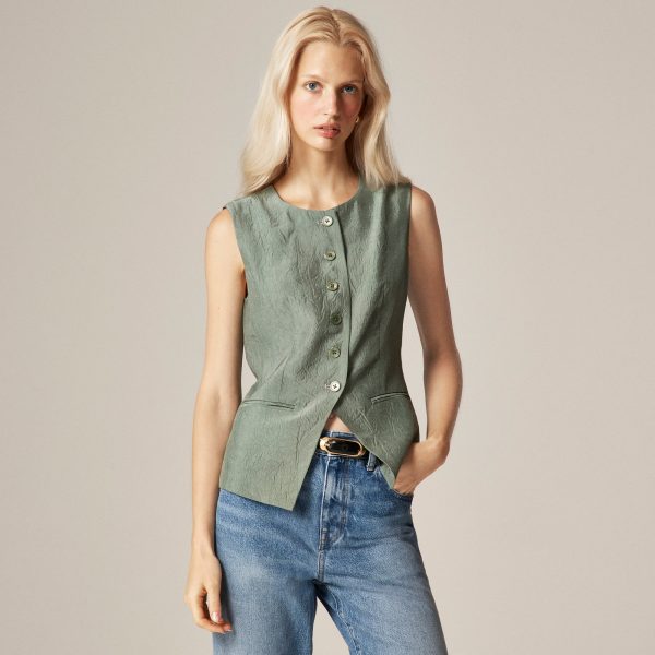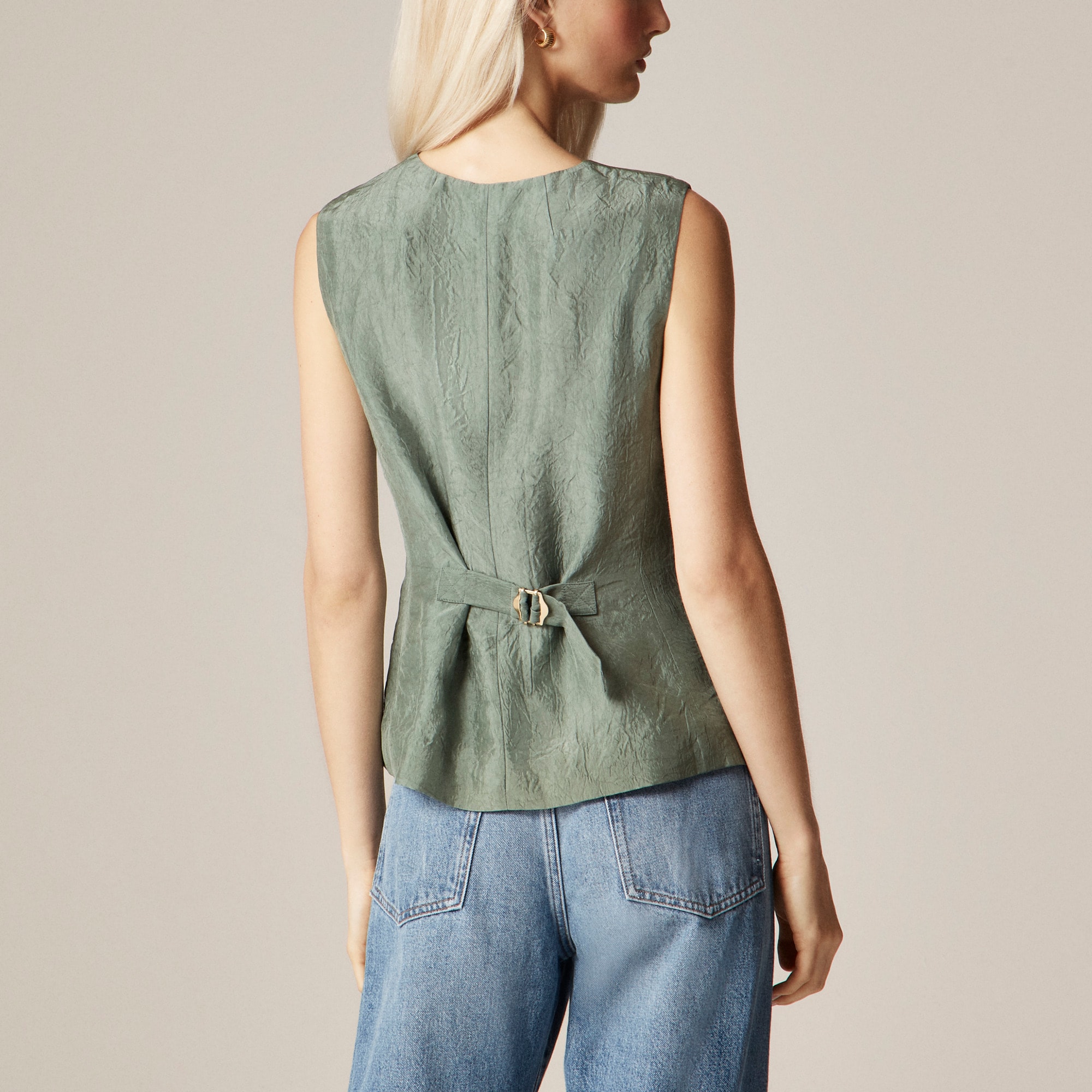 The cutaway vest, now in satin. Our sleek, tailored vest top gets a dressier update in subtly textured satin. It still features the signature cutaway detail at the hem for a hint of skin and back buckle detail, so you can cinch the waist to your liking. Wear it solo or layeredu0026mdash;either way, it sharpens up anything you pair it with.