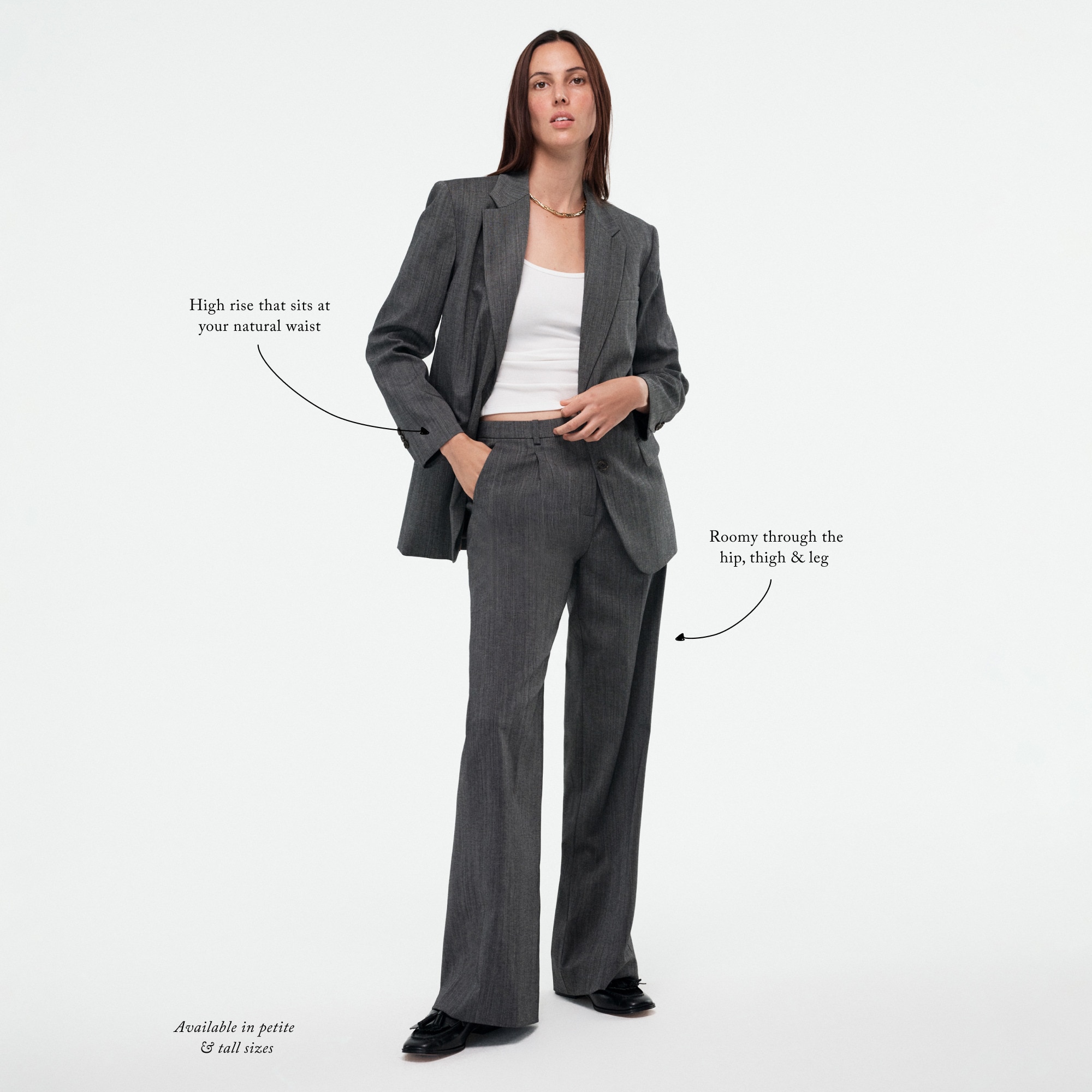 The pant that takes after its name. . .We gave our top-rated trouser a bit of an upgrade, with a comfortable high rise, a slightly wider leg with a relaxed, uncuffed hem and a 31u0026quot; inseam that’s designed to skim the floor in flats and looks even more elevated with heels. Plus, these are crafted from our latest lightweight wool-blend fabric from Italy’s Nova Fides mill, renowned for their durable, premium-quality materials and rich history.