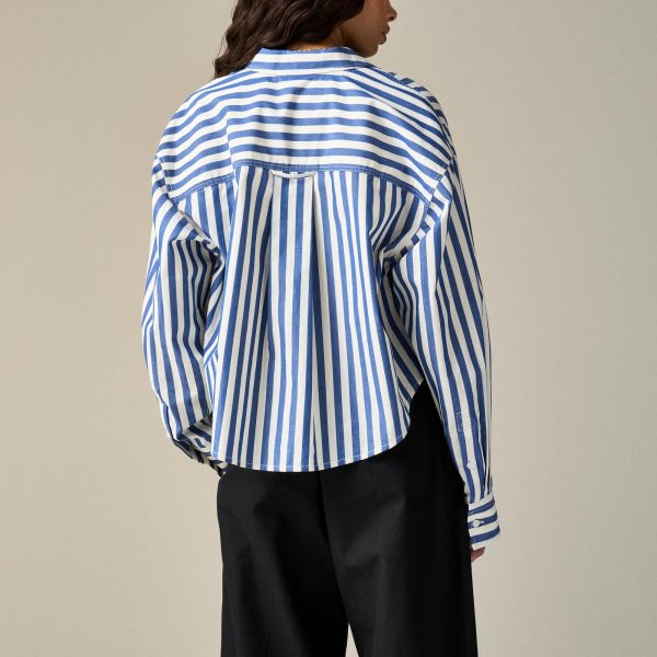 Étienne Cropped Button-up Shirt In Striped Cotton Poplin For Women