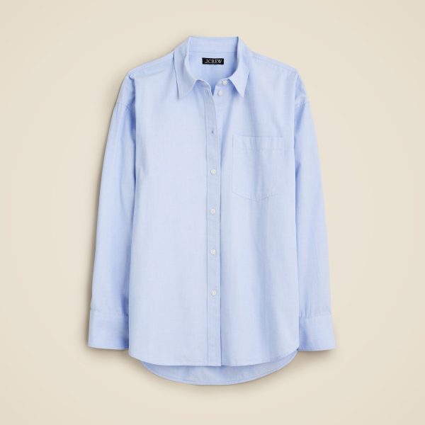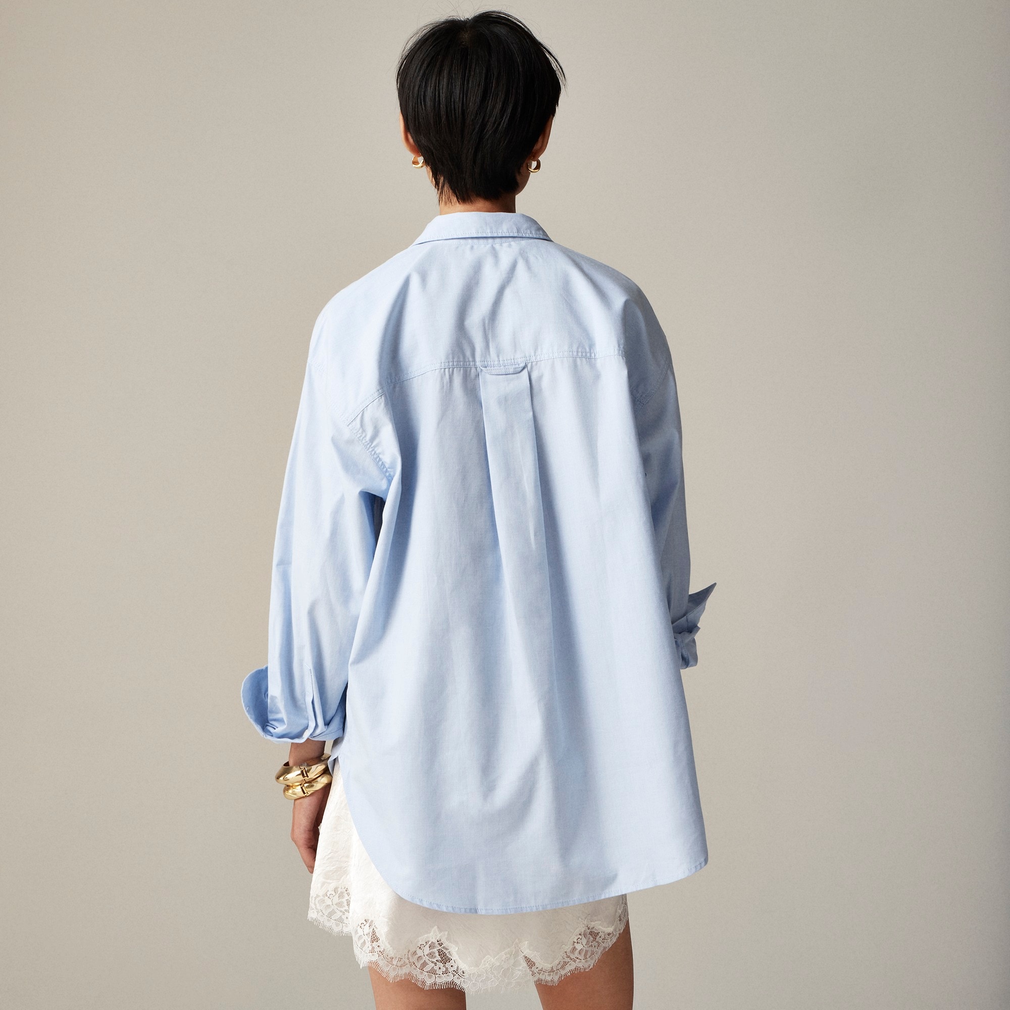 As seen in Saint-Tropez with the J.Crew Collective. . . Our roomiest proportion to date with a longer length. Ultra-relaxed and effortless, it has a menswear-inspired feel and a high-low shirttail hem for a hint of drama. Plus, it’s made in a lightweight oxford cotton that’s breathable but still structured and durable.