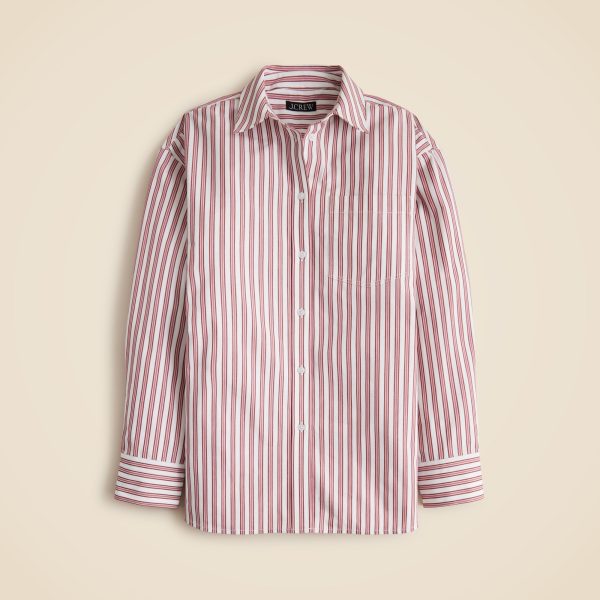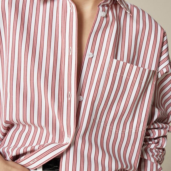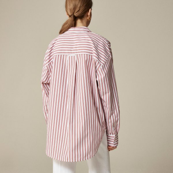 Our roomiest proportion to date with a longer length. Ultra-relaxed and effortless, it has a menswear-inspired feel and a high-low shirttail hem for a hint of drama. This version is crafted in a striped version of our crisp cotton poplin fabric that we love.