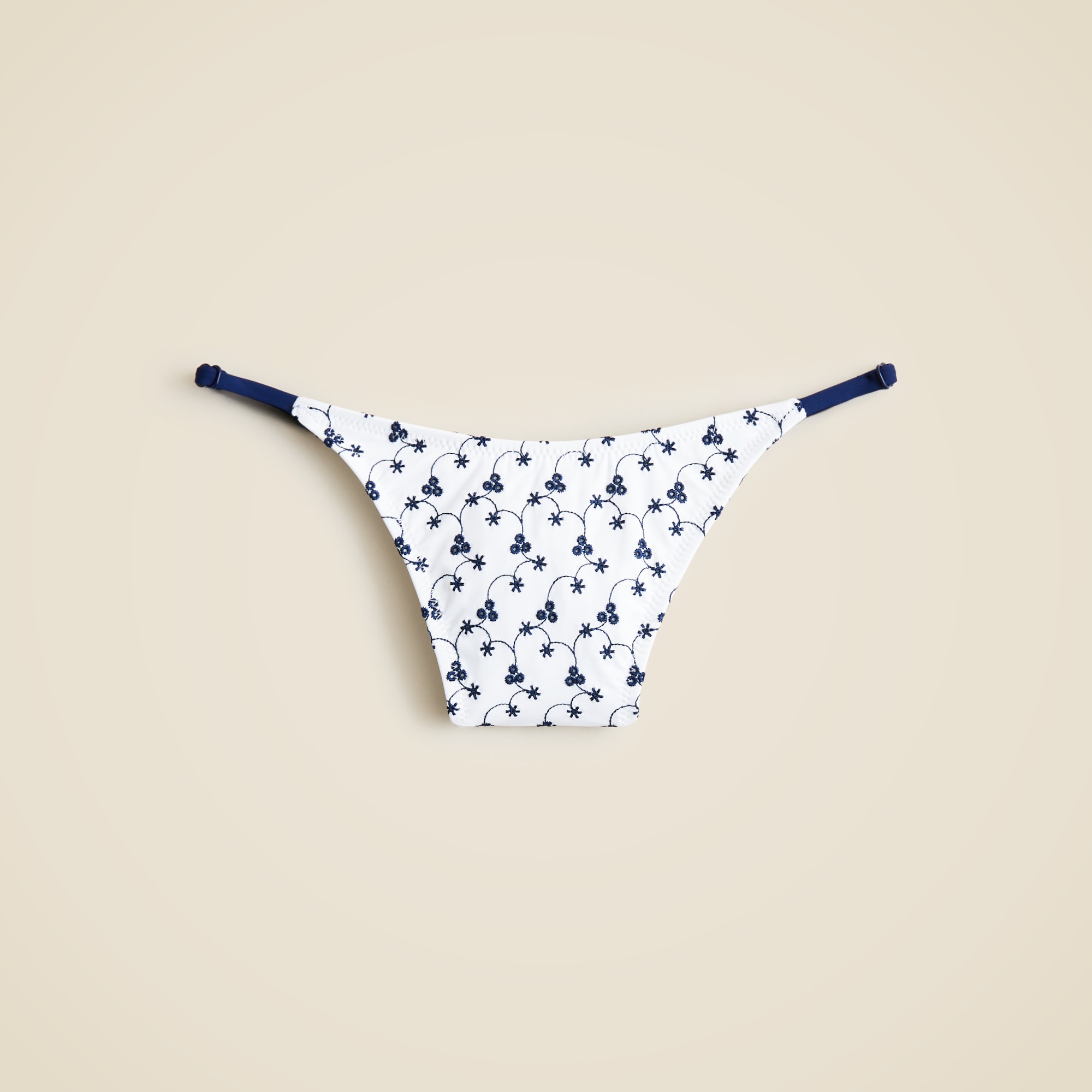 A sleek style with special details and all the ’90s inspiration. A contemporary take on an old catalog fit, this bikini bottom has a higher-cut leg, intricate eyelet details all over and thinner straps at the side for a seamless look.