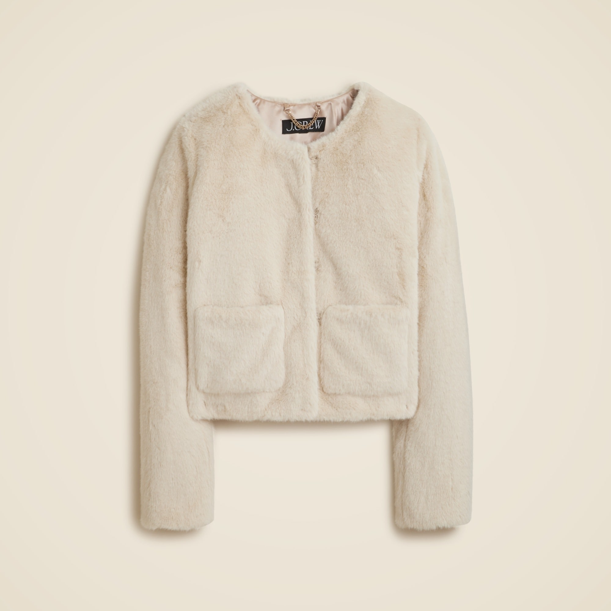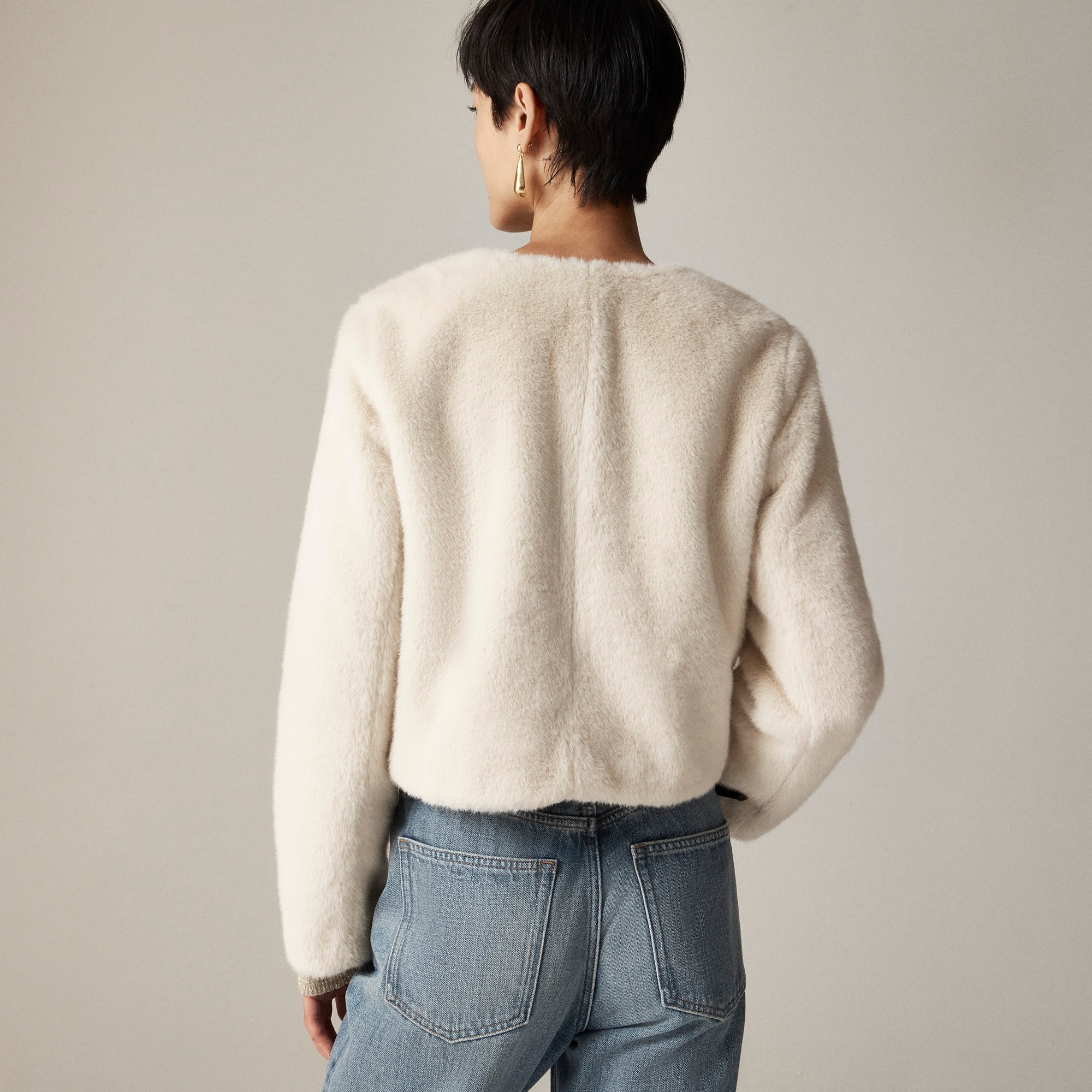 Meet the life of the party. . . We love this ladylike jacket for more dressed-up affairs, thanks to its short and feminine silhouette with practical patch pockets in the front. Plus, it’s crafted in faux fur for the perfect touch of texture.