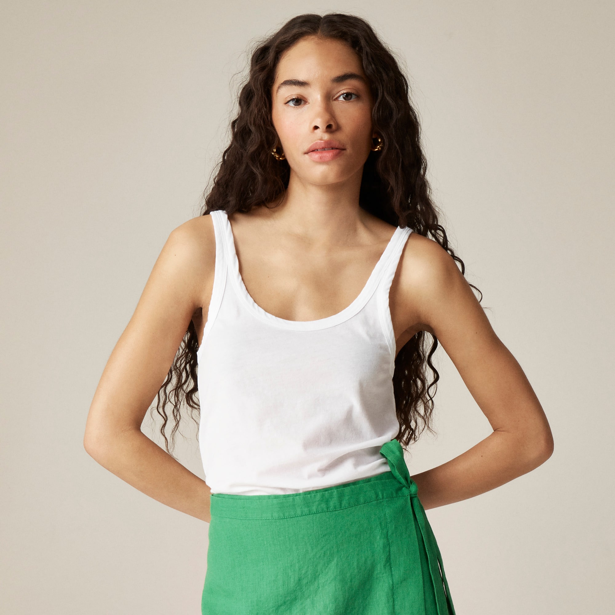 Introducing feather jersey. Crafted from our latest 100 percent cotton T-shirt fabric that’s supersoft, drapey and lightweight, this slim-fitting tank is the perfect base layer to wear underneath sweaters now and on its own later.