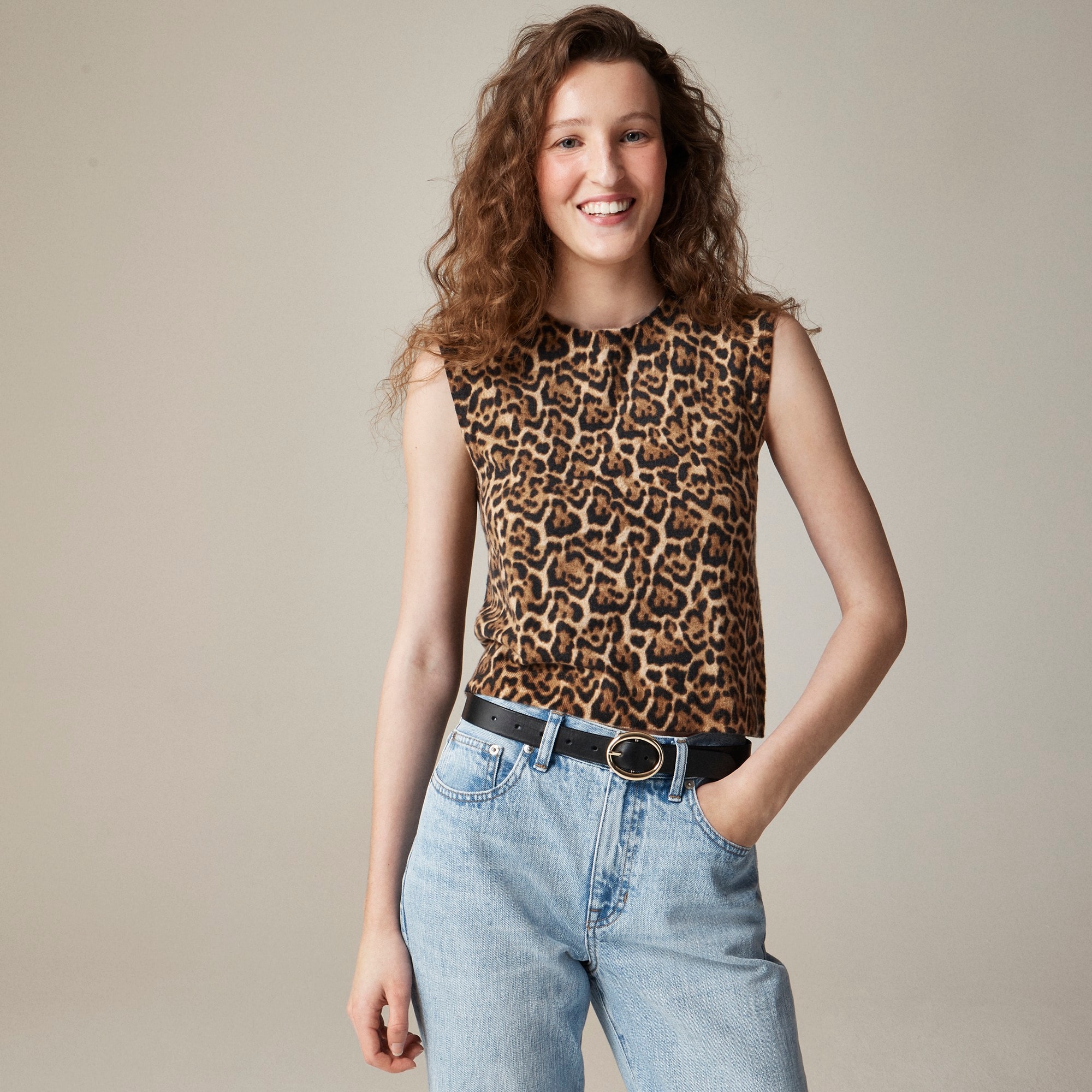 Featherweight Cashmere-blend Sweater Shell In Leopard Print For Women