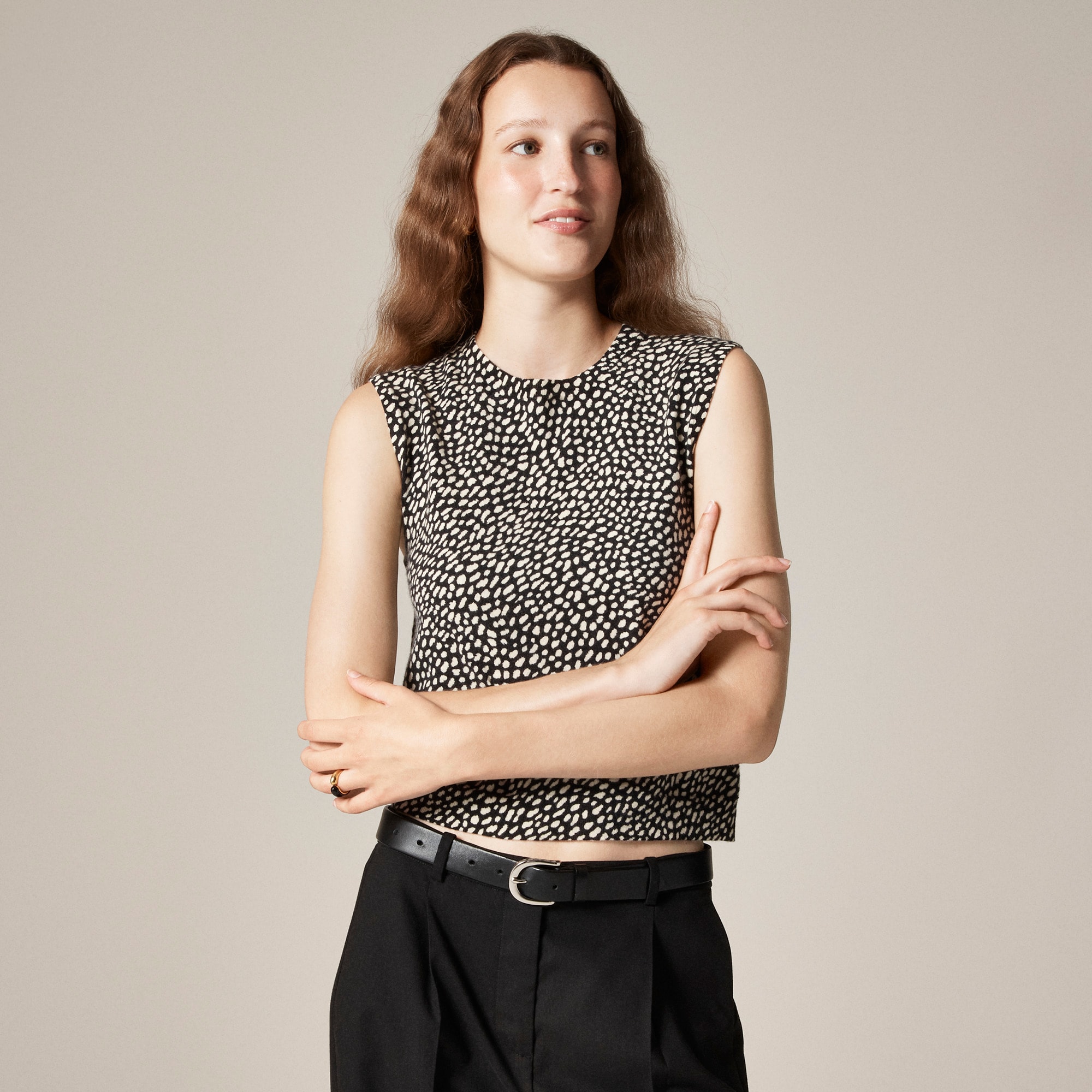 The lighter side of cashmere. Impossibly soft, surprisingly breathable and smooth to the touch, our featherweight cashmere quality is the result of decades of expertise. The fibers we source for this finish are extremely fine and hollow on the inside, which gives this sweater a barely there feel that’s comfortable in warmer and cooler climates. This sweet, subtly shrunken silhouette hits right above the hips and makes the perfect layering piece for now and later.