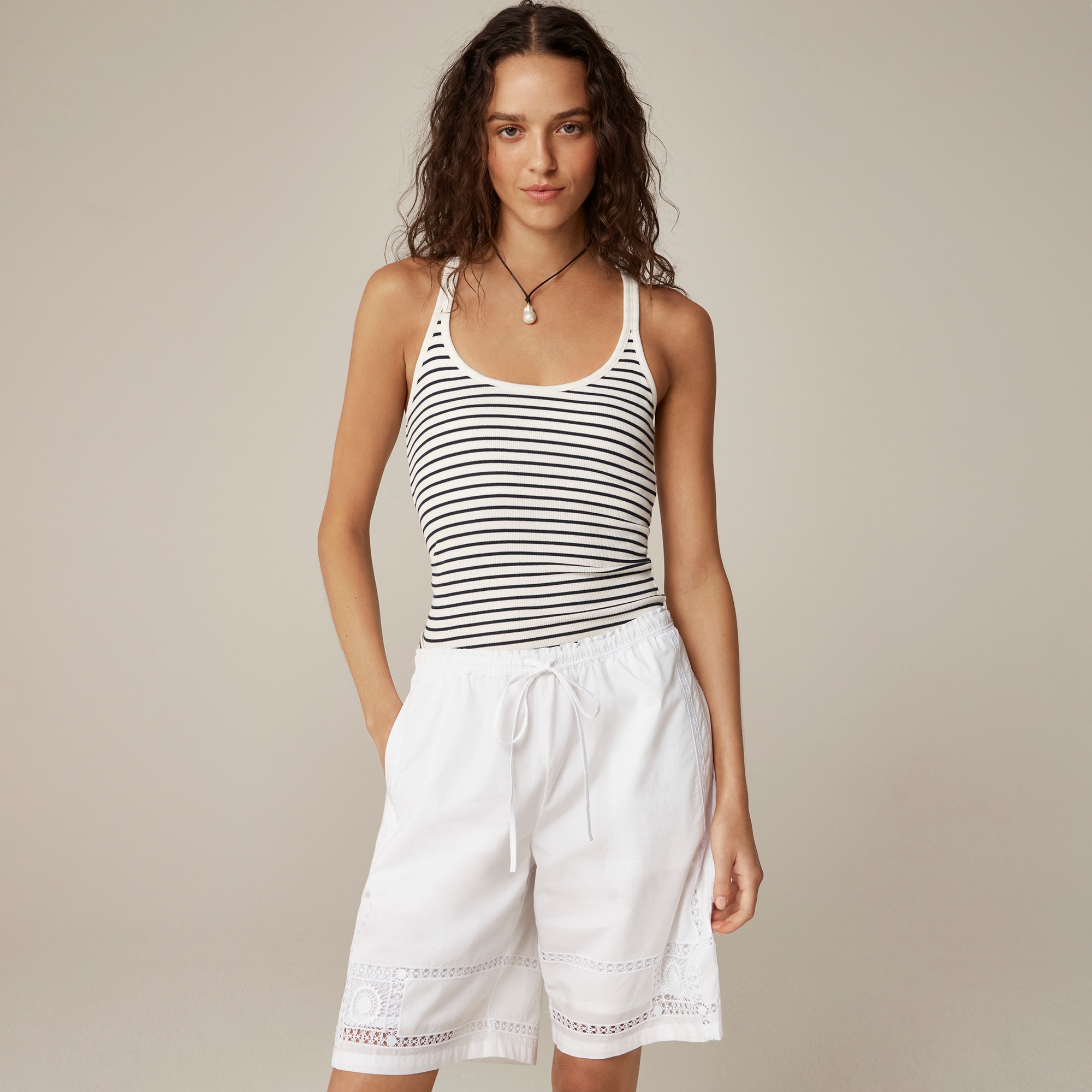 A closet essential that brings all the casual polish. It comes in a streamlined racerback silhouette with a classic scoopneck and a supportive shelf bra inside. Plus, it’s crafted from our fine rib fabric, which has an understated, subtly textured finish that’s extra-elevated.