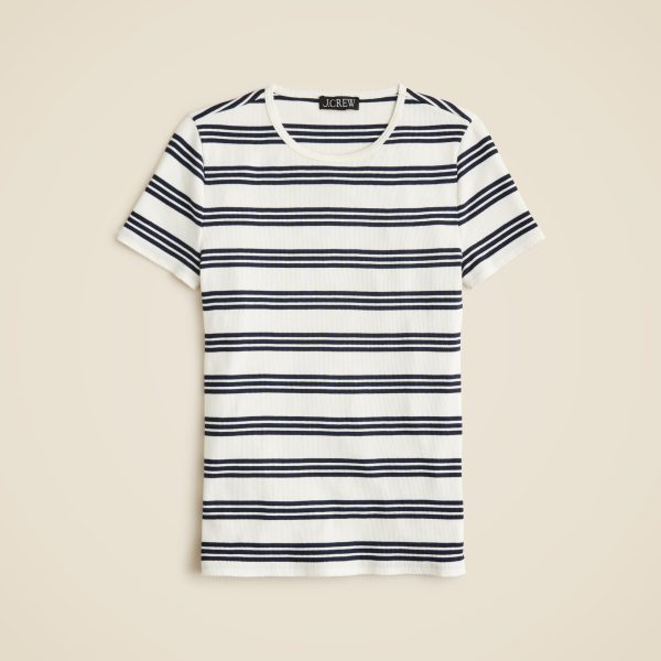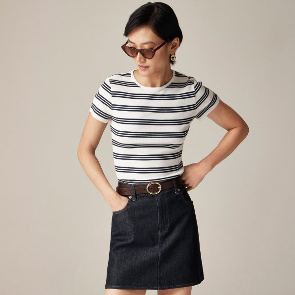 A closet essential. This take on the classic tee has a close fit all the way through and comes with scalloped trim details along the edges. Plus, it’s crafted from our fine rib that’s understated, streamlined and extra-polished.