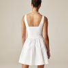 A classic silhouette with corset-inspired details up top. This timeless style is fitted through the bodice with visible vertical seams for a streamlined look and it comes with a short, swingy skirt.