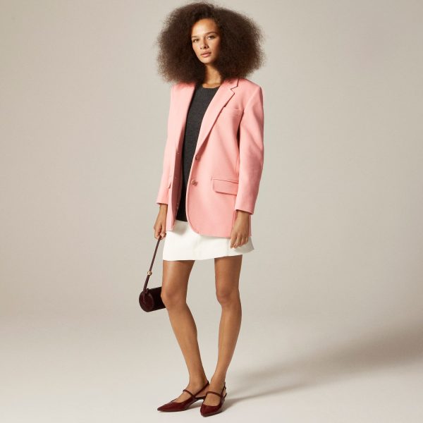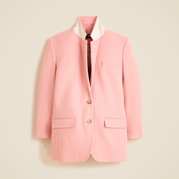 Tailored just right, with room for endless outfit possibilities. This hybrid silhouette is made for all things layeringu0026mdash;meaning over button-ups, blouses or tees. Designed with fall in mind, this wool-blend blazer doubles as a jacket with a hidden color contrast under the collar and reinforced elbow patches for extra durability. Plus, it’s crafted from a cozy wool blend with a hint of cashmere for an ultra-luxe touch.