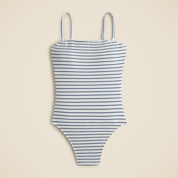 For your next seaside adventure. . .This sleek suit is designed with removable straps that make unflattering tan lines impossible. Plus, it’s crafted from a retro-inspired fabric that has lots of texture and stretch.