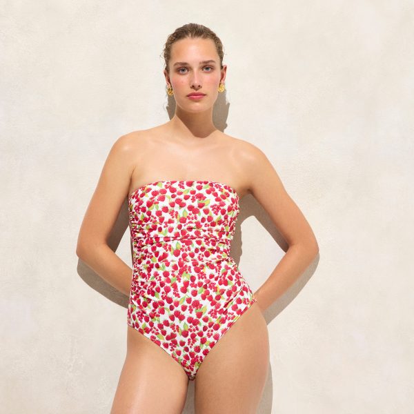 You can’t go wrong with our customer-favorite ruched suit. This super-flattering style comes with removable straps because we’re all about options. Plus, it’s cast in a sweet fruit print that pairs back to our cotton voile beach pant.