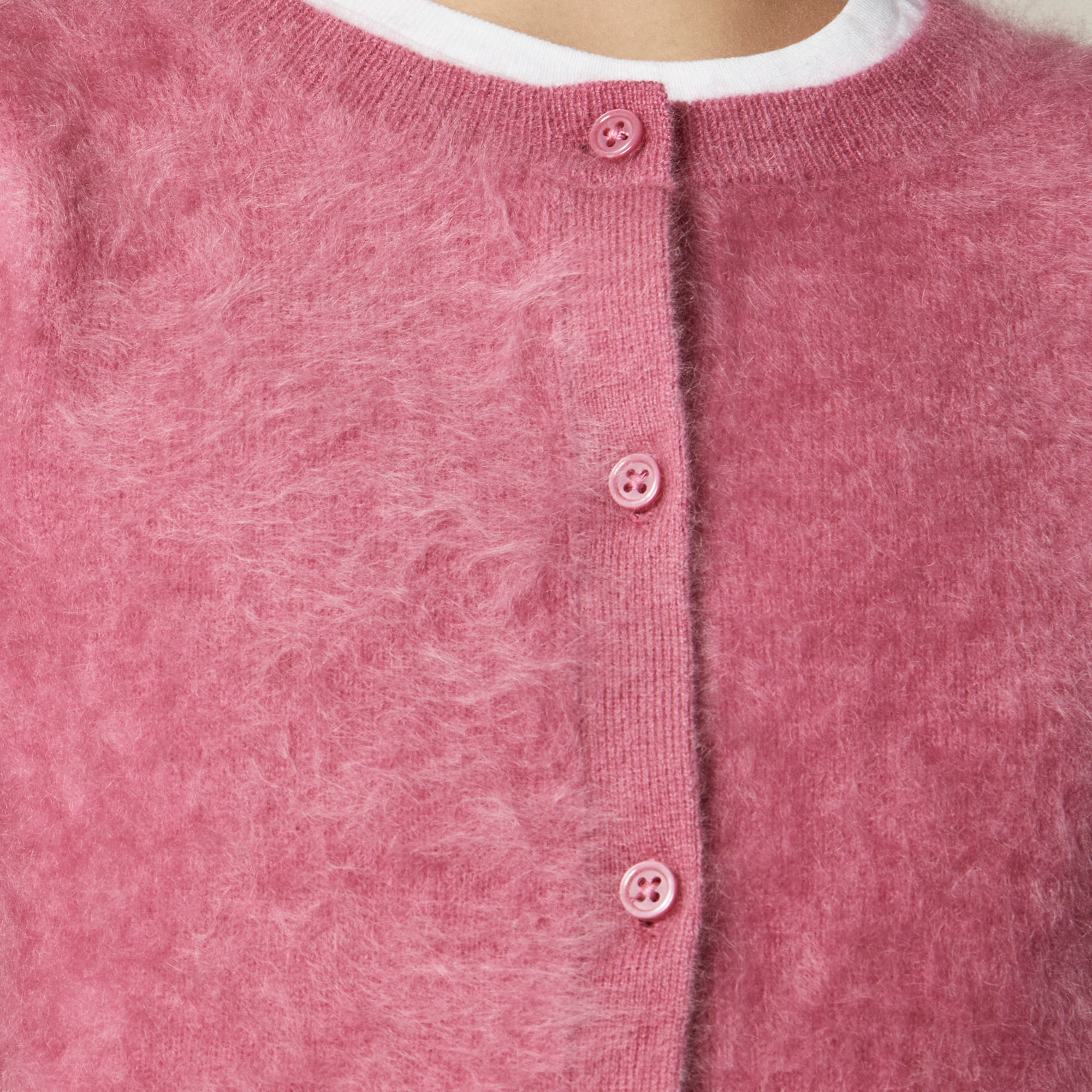 Our best-selling brushed cashmere made mini! This cropped cardigan is crafted from Mom’s totally unique sweater texture, which was specially developed with longer washed cashmere fibers for an extra-fuzzy finish. The result? An unforgettable layer that’s unlike anything they’ve seen (or felt) before. We source cashmere that is certified to the AbTF’s The Good Cashmere Standardu0026reg;, which ensures the welfare of the cashmere goats, protects natural resources and improves the working conditions of farmers and farmworkers in Inner Mongolia.
