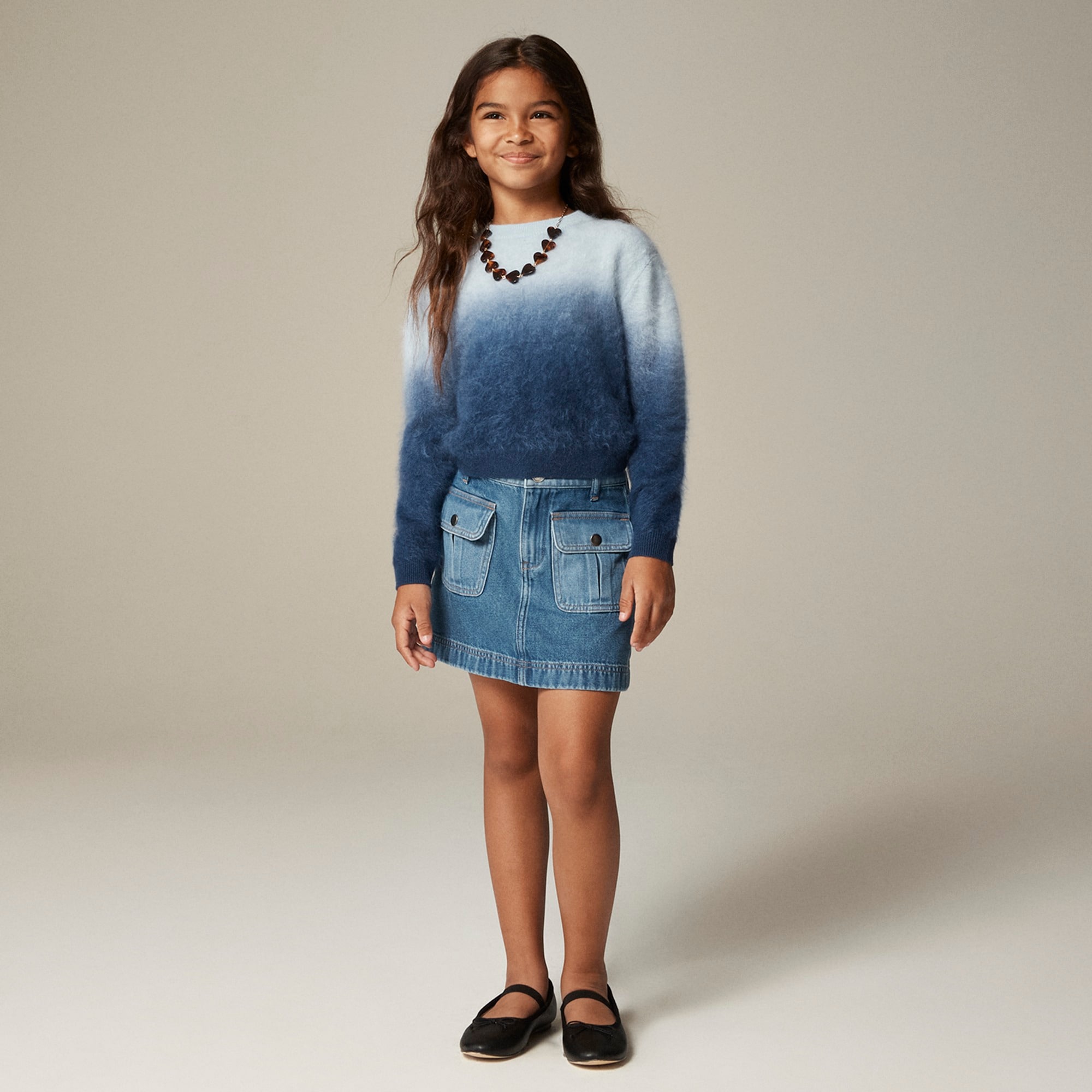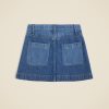 A two-tone skirt that’s totally cool. . .This lightweight everyday style is made from Mom’s drapey denim fabric, which has the classic look of denim without any of the stiffness. (In other words, it’s totally jean-ious.) Bonus: the roomy patch pockets!