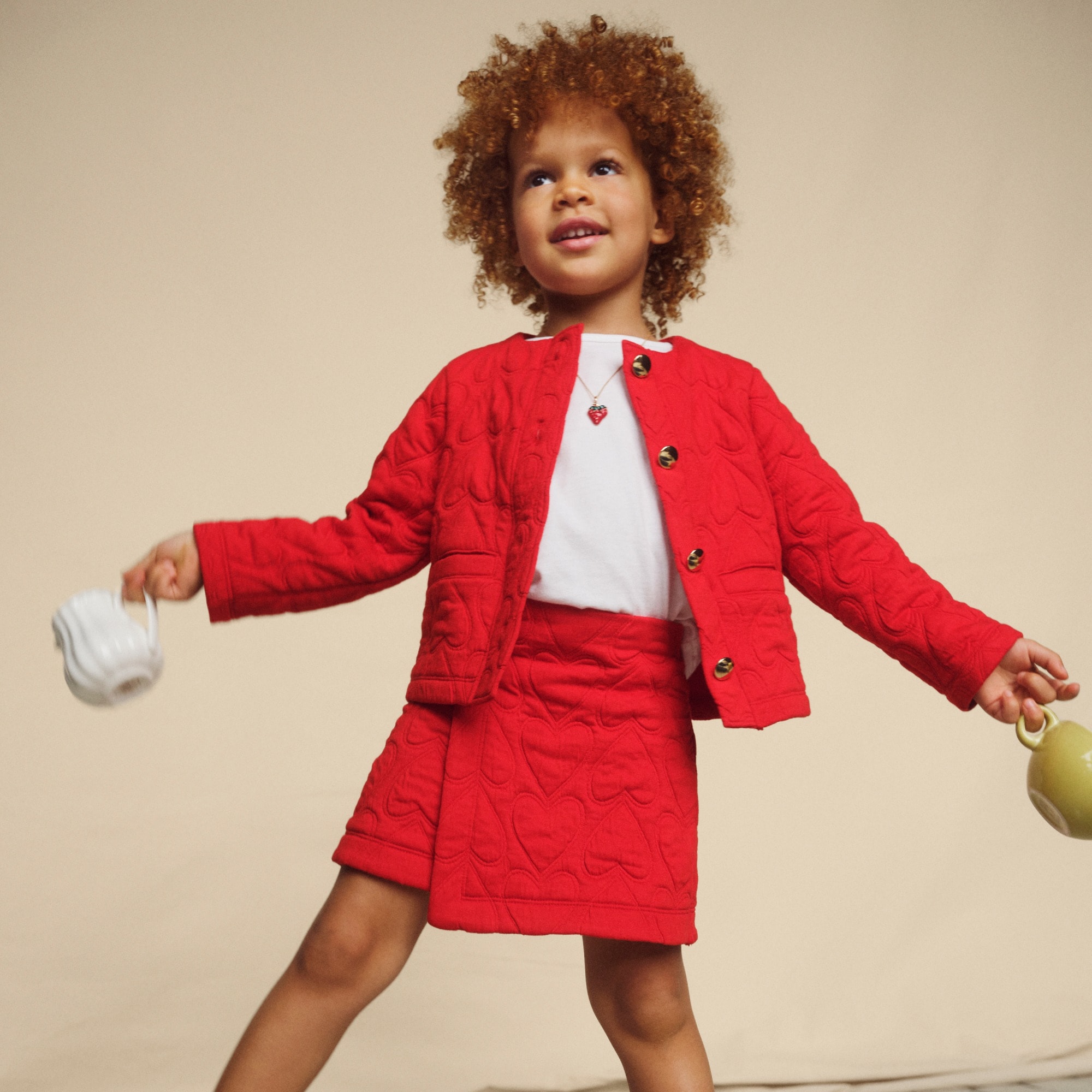 Cute skirt alert! This wrap skirt gets a cozy update in a cushy heart-quilt fabric they’ll l-o-v-e. Bonus: We made a matching jacket for the most adorable outfit pairing.