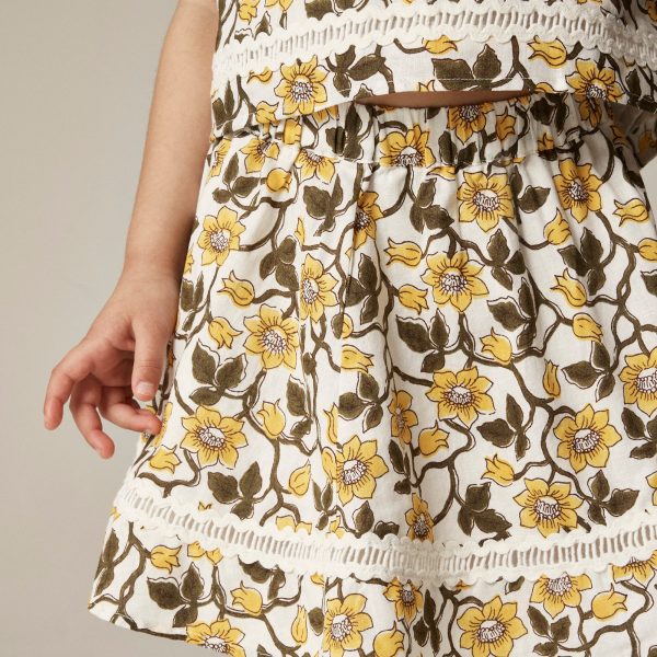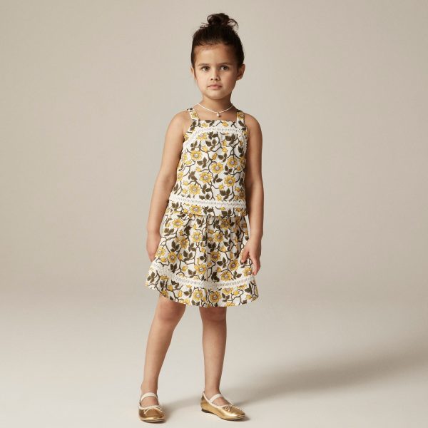 A skirt with that summer feeling, thanks to an open rickrack trim and the prettiest daffodil print. Plus, it’s made from a lightweight blend of linen and cotton that’ll keep her looking polished and feeling cool. P.S. Cue the family photos. . . We made a matching dress for sis!