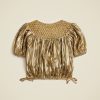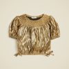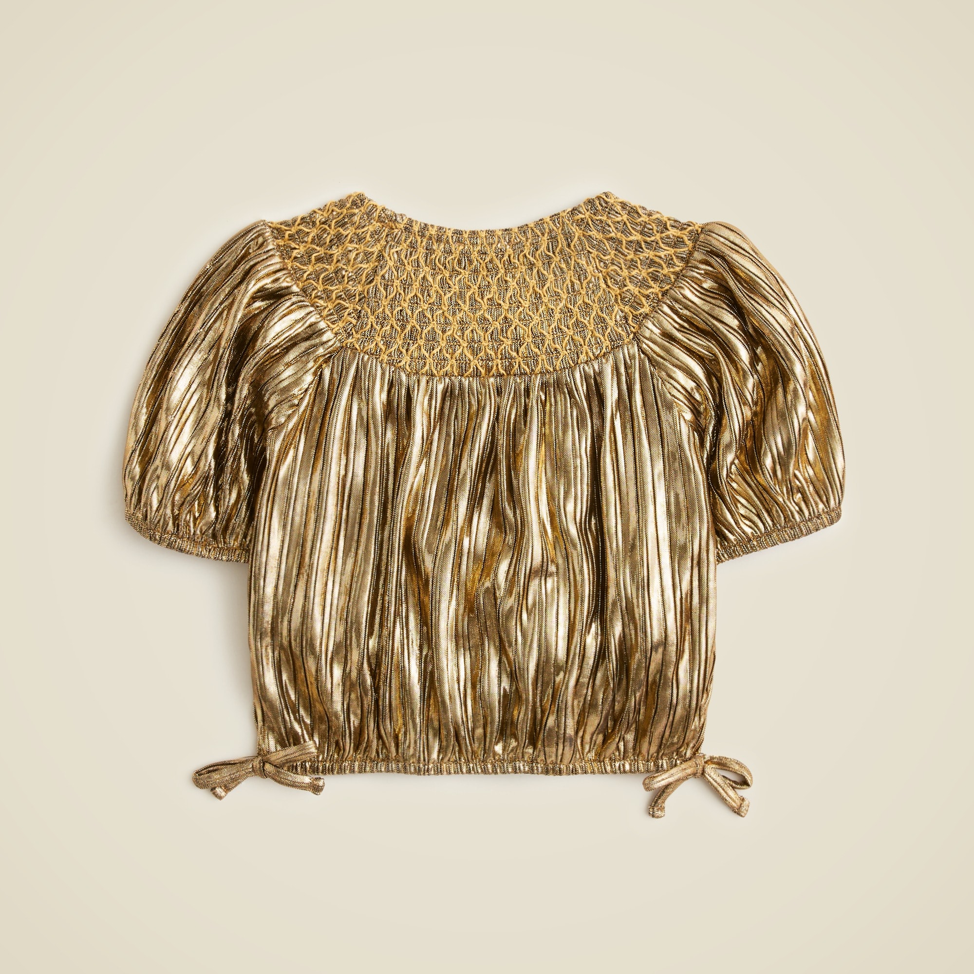 The perfect dress-up moment. . .This pretty cropped top features all of her favorite thingsu0026mdash;shiny metallic fabric, smocking and bows at the hemu0026mdash;for a sweet statement. P.S. Pair it with its matching skirt for even prettier outfit potential.