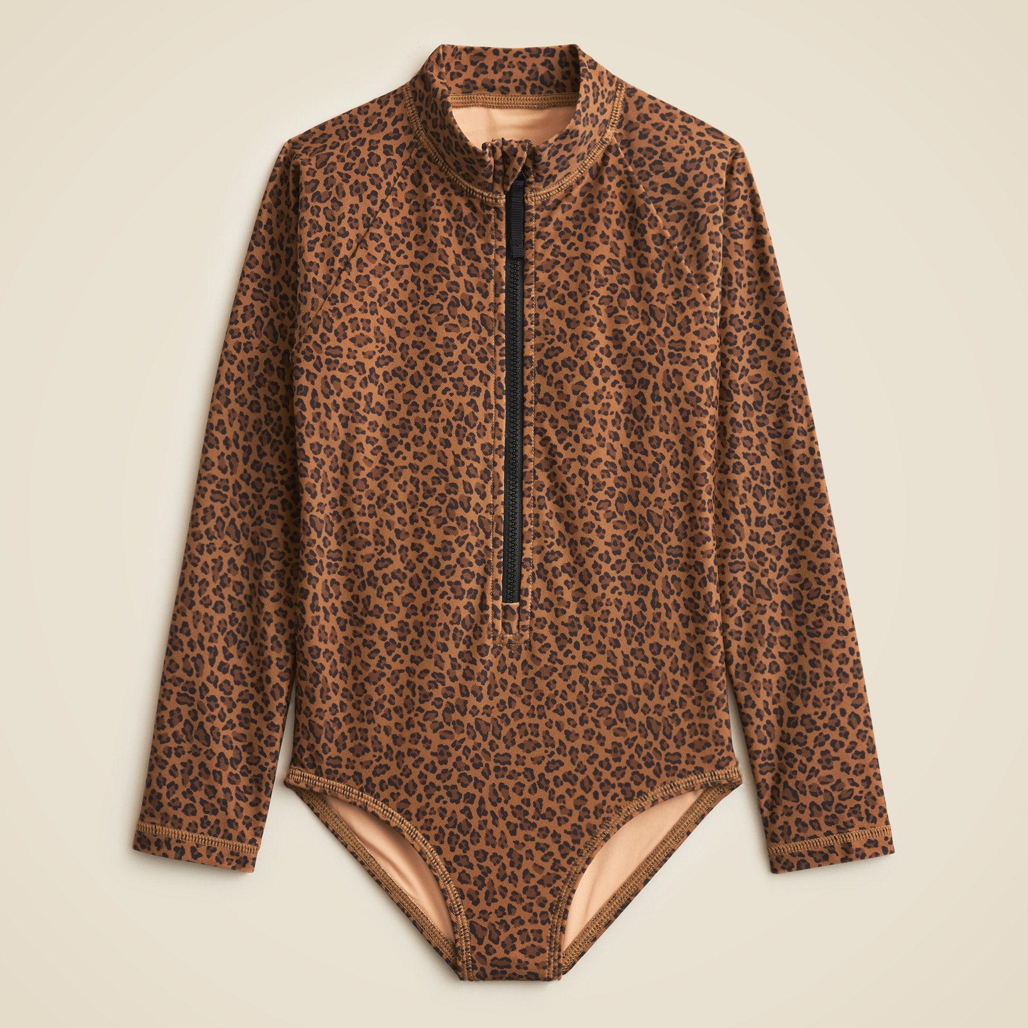 A swimsuit that’s guaranteed to make a splash. . .This rash guard one-piece is as easy as it gets, thanks to a zip-up closure and higher neckline for extra coverage.