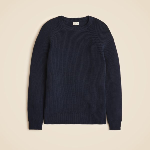 The sweaters that were ubiquitous in the ’80s and ’90s are here again, knit with raglan sleeves and a textured ribbed stitch in a dense cotton that’s simultaneously sturdy and breathable. Inspired by our vintage catalogs, we’ve adopted the name, u0026quot;heritage cotton,u0026quot; for this particular fabric. It’s easy to wear, comfortable and it looks good with just about everything; the compact knit has a dry handfeel and just the right amount of structure.