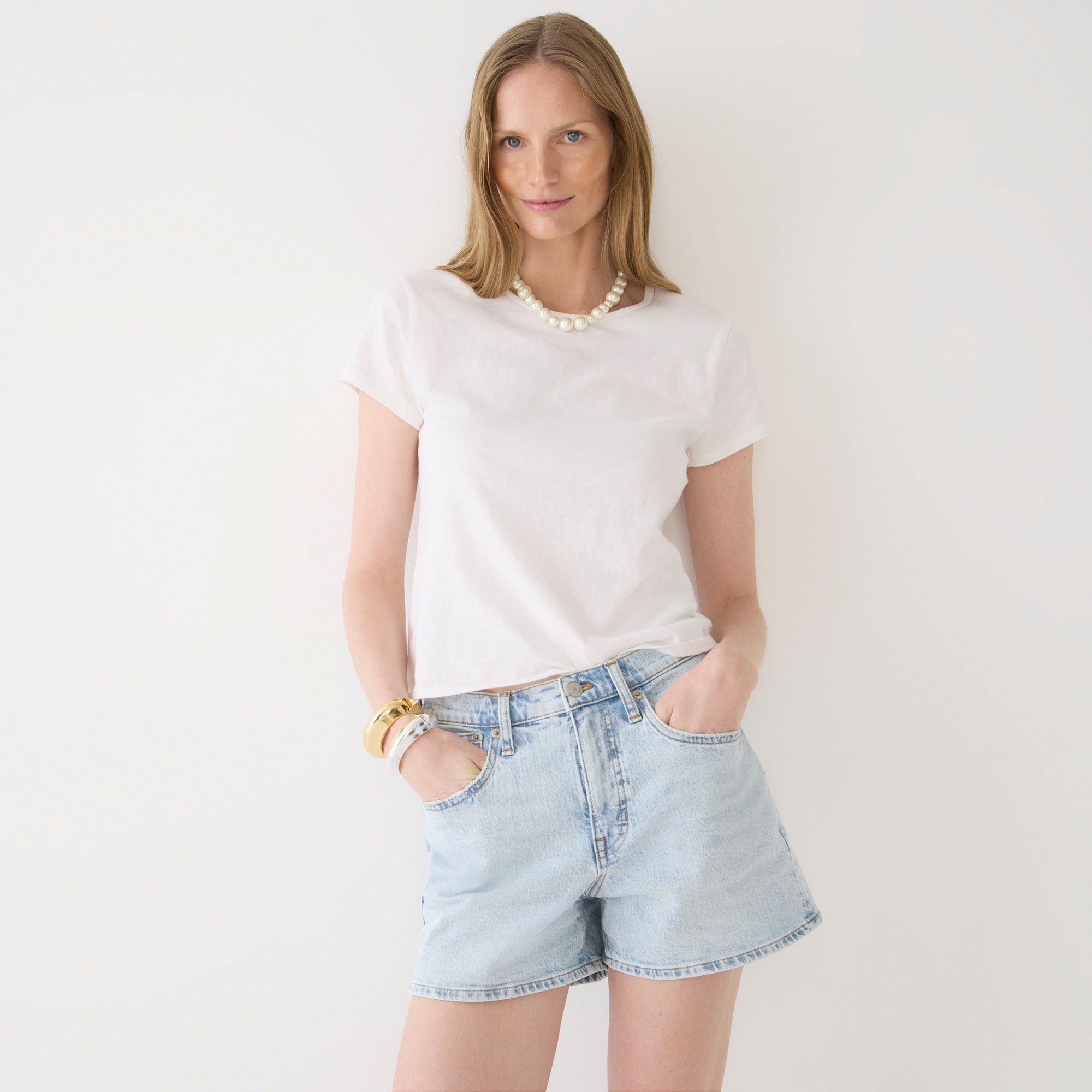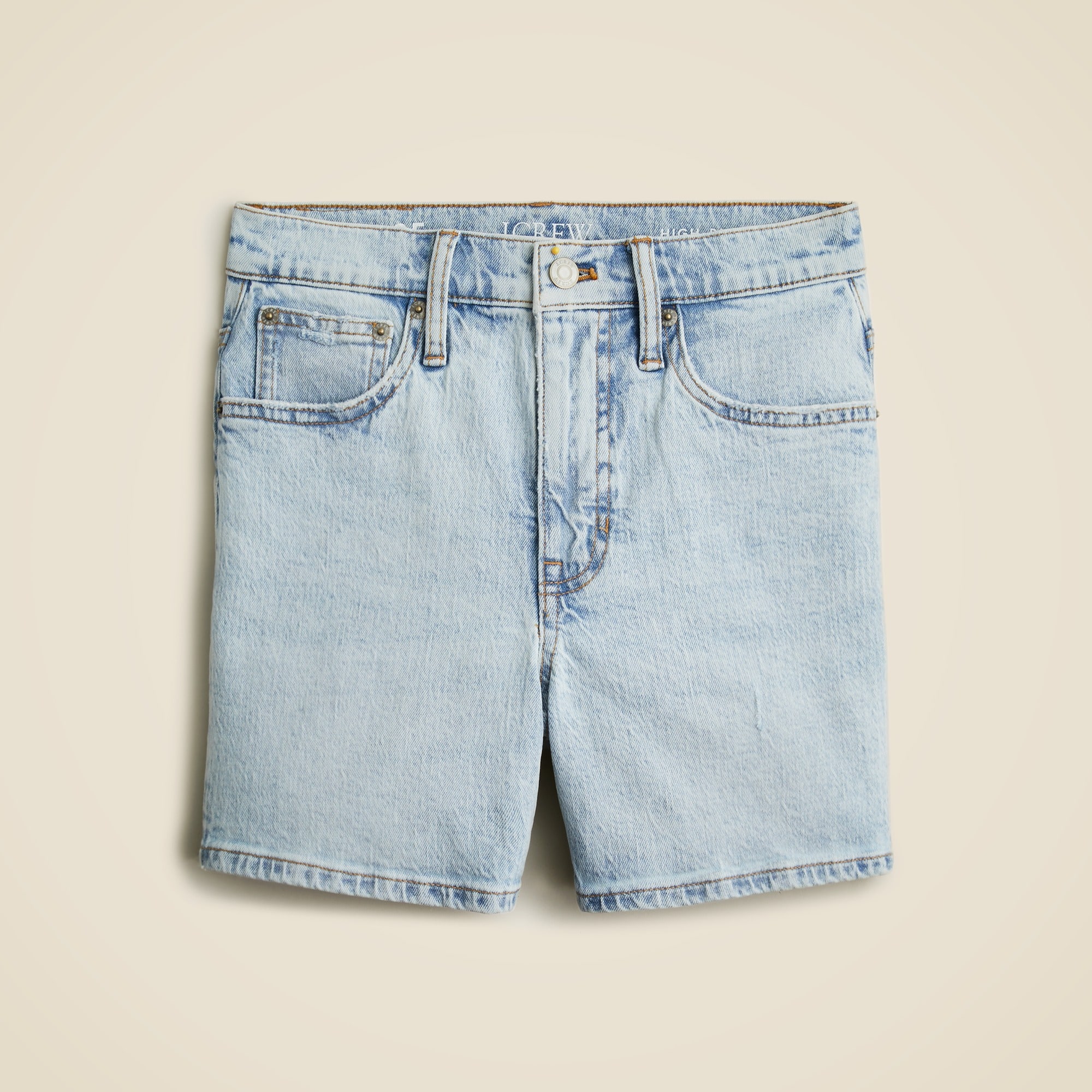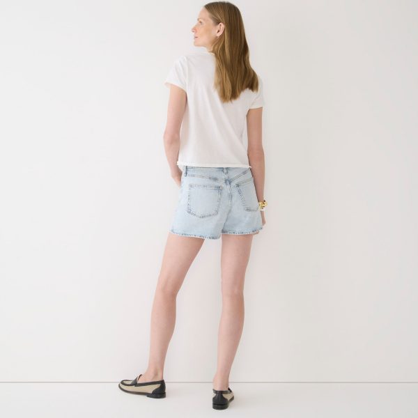 Everyone needs a good, solid pair of jean shorts. Meet yours. This pair comes with a high rise, super-comfy fabric and extra-light wash you can wear all day long. By buying cotton products from J.Crew, youu0026apos;re supporting our investment in Better Cottonu0026apos;s mission to help cotton communities survive and thrive while protecting and restoring the environment. This product is sourced through a system of mass balance and therefore may not contain Better Cotton.