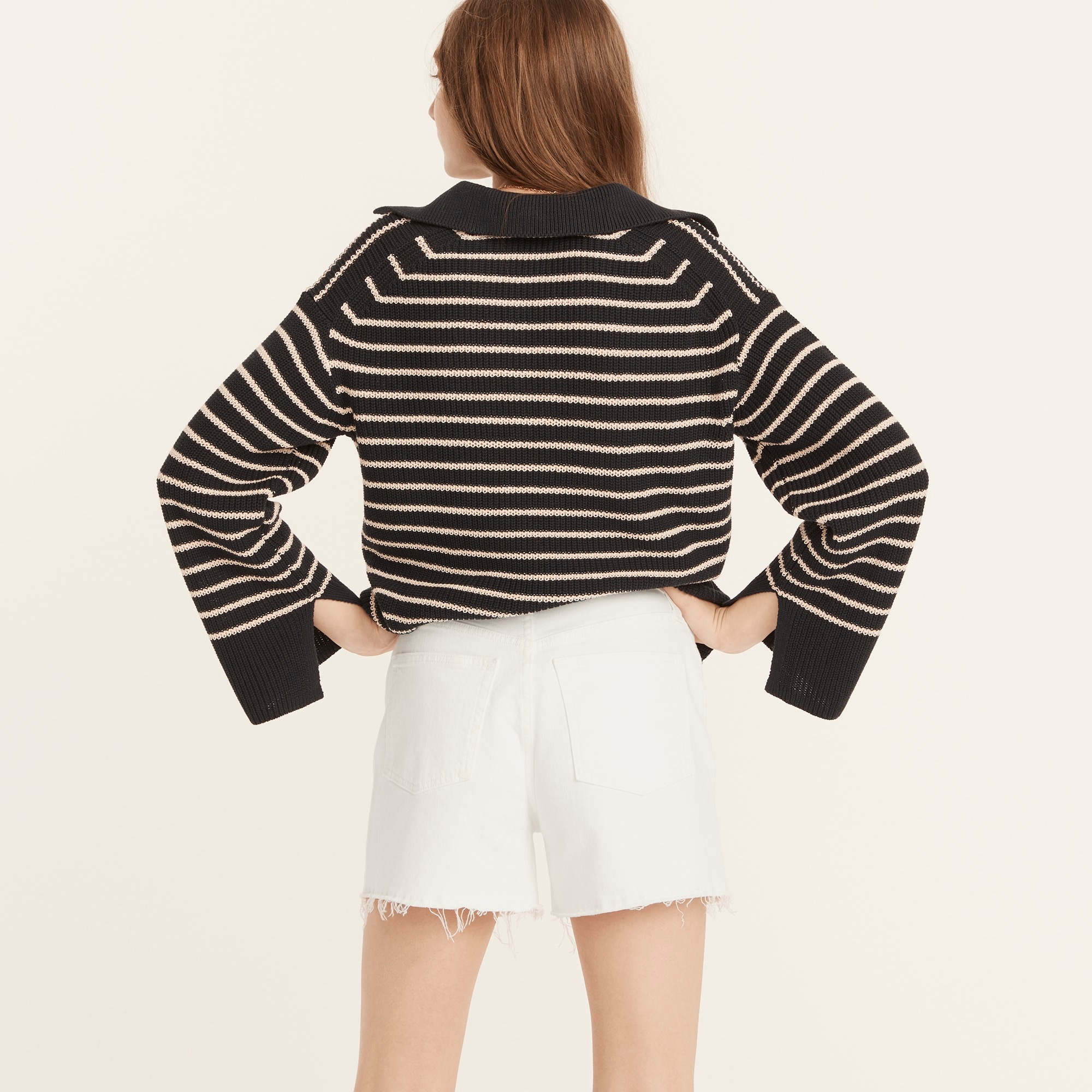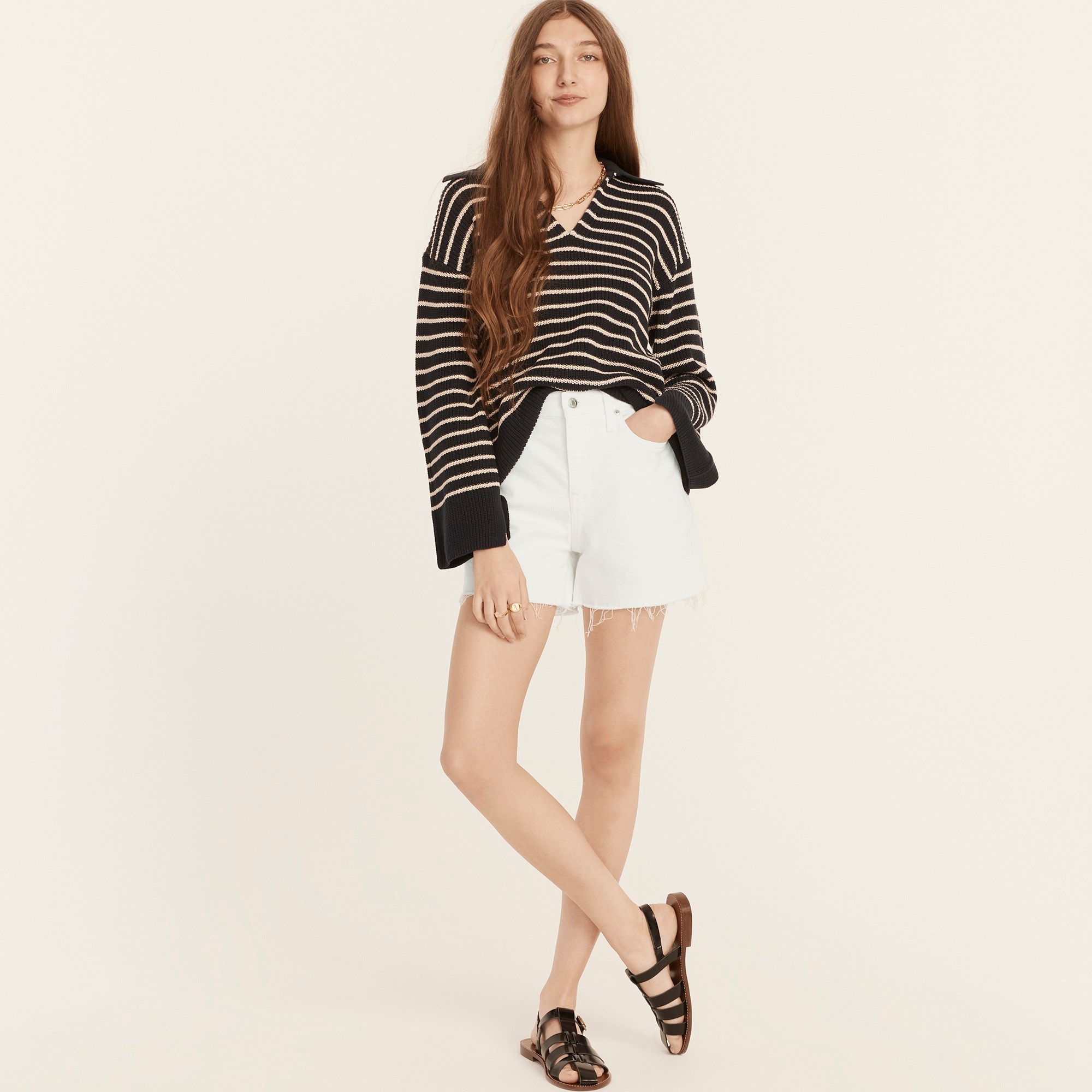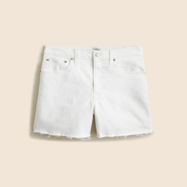 Everyone needs a good, solid pair of white jean shorts. Meet yours. This pair comes with a high rise and super-comfy fabric you can wear all day long. By buying cotton products from J.Crew, youu0026apos;re supporting our investment in Better Cottonu0026apos;s mission to help cotton communities survive and thrive while protecting and restoring the environment. This product is sourced through a system of mass balance and therefore may not contain Better Cotton.