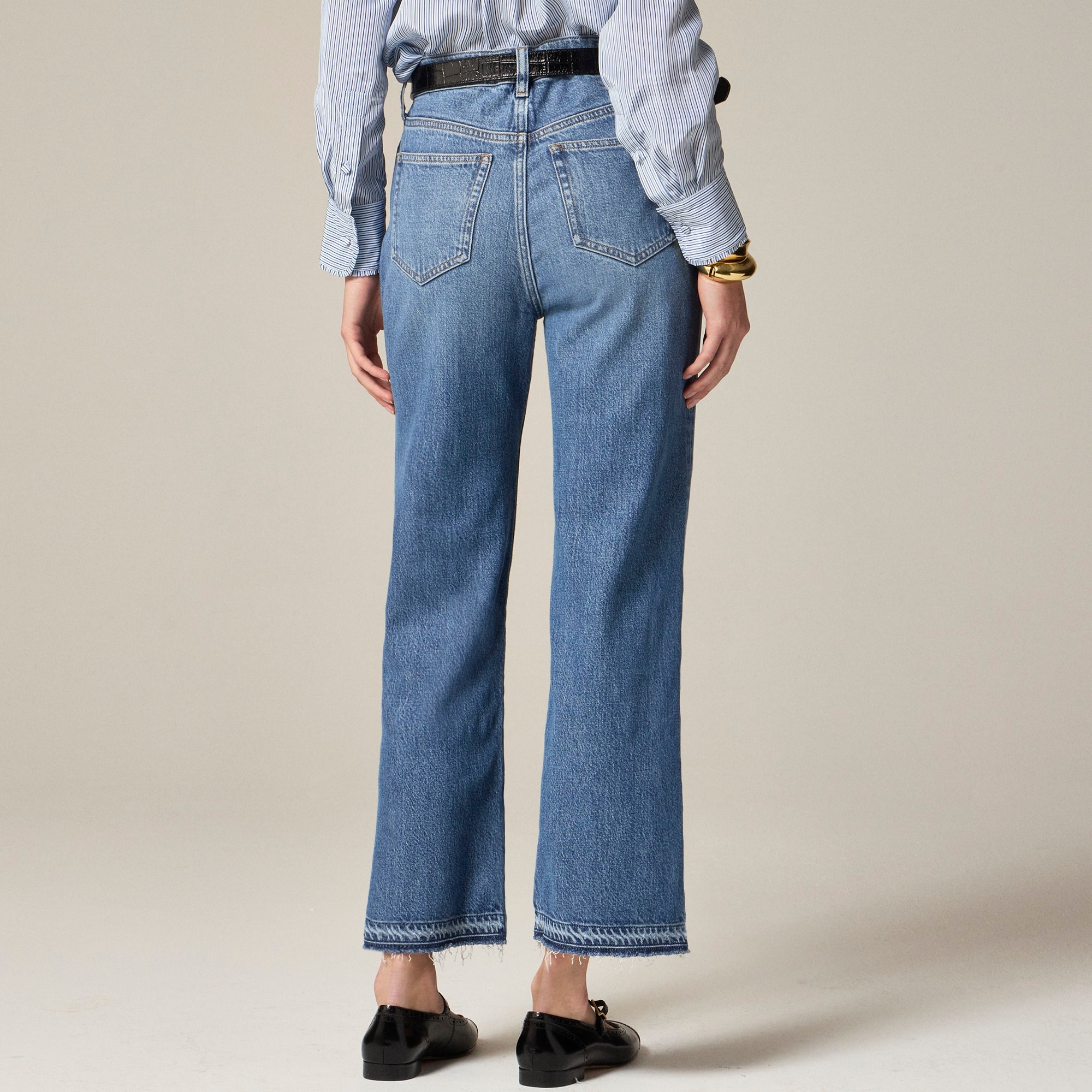 A subtly cropped fit with a kicky, raw hem. It’s slim through the hips and thighs, with a flattering high rise. Plus, this pair is crafted with just a touch of stretch, so they’re structured, durable and designed for all-day comfort. They are also made with TENCELu0026trade; lyocell (an eco-friendly fiber produced from wood pulp sourced from sustainably managed and certified forestsu0026mdash;meaning not ancient or endangered!).