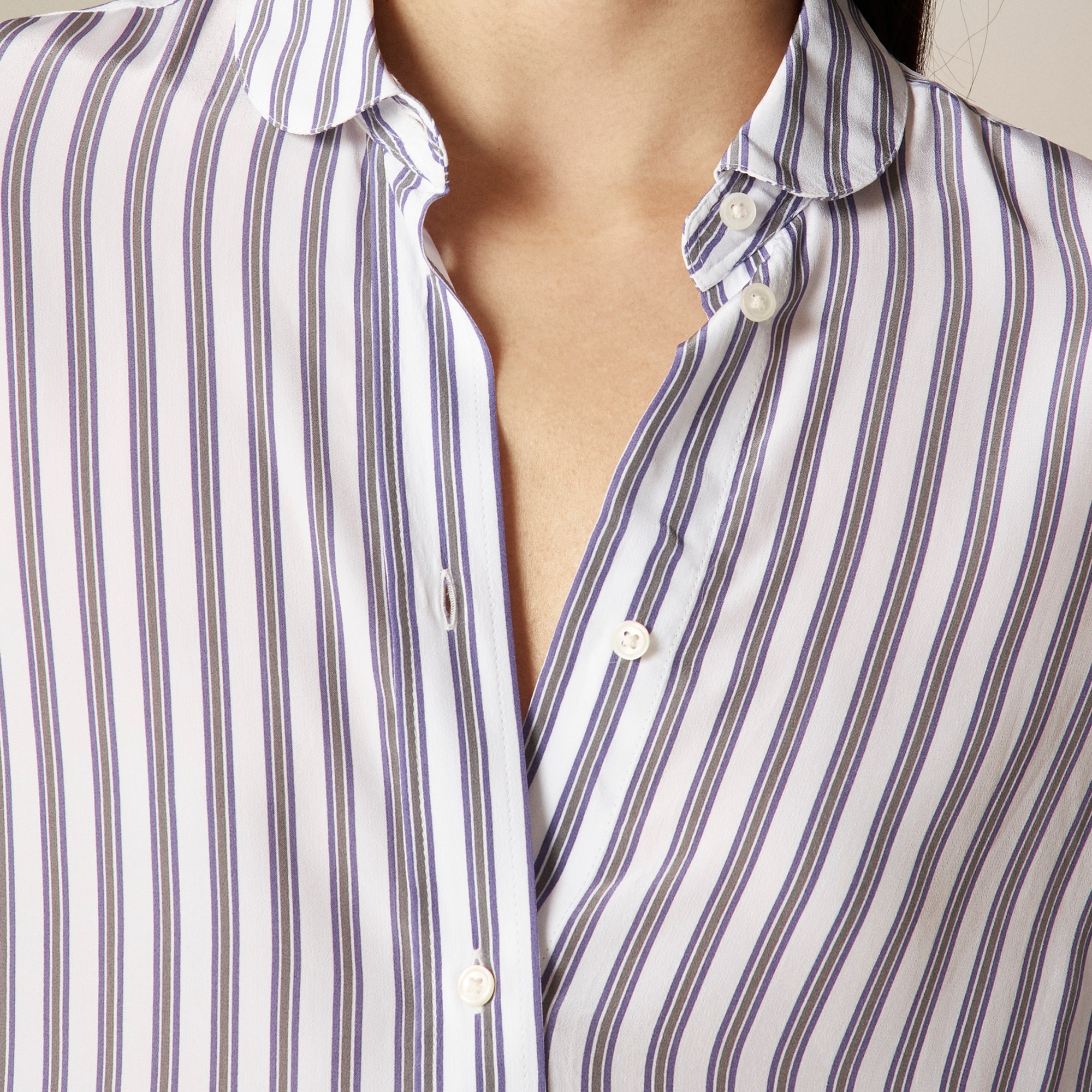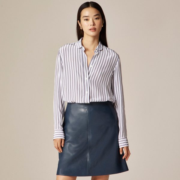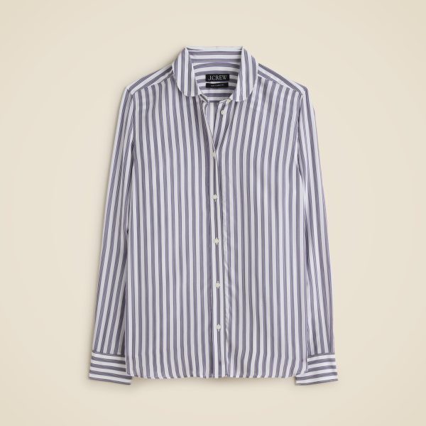 We made the ideal button-up. . . Our design team spent months fine-tuning this new fit. It’s cut in a classic silhouette (similar to our Garu0026ccedil;on shirt), with slimmer sleeves for an elegant, modern shape that layers effortlessly under blazers and sweaters. Made from our smooth crepe de chine with a subtle sheen, it’s equal parts comfortable and refinedu0026mdash;and it feels like it was tailored just for you.