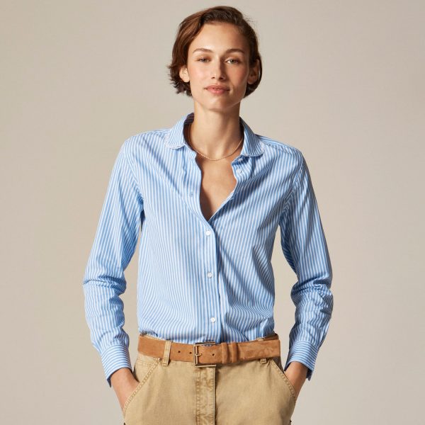 We made the ideal button-up. . .Our design team spent months fine-tuning this new fit. It’s cut in a classic silhouette (similar to our Garu0026ccedil;on shirt), with slimmer sleeves for an elegant, modern shape that layers effortlessly under blazers and sweaters. Made from our crisp, customer-favorite cotton poplin, it’s equal parts comfortable and refinedu0026mdash;and feels like it was tailored just for you. This version also comes with a club collar detail for a unique, prep-inspired touch.
