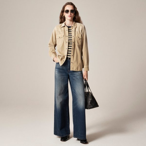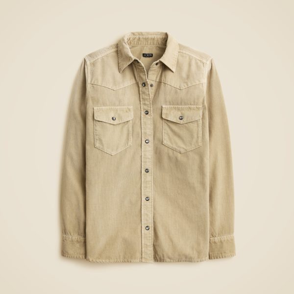 Classic tailoring with a western twist. This shirt comes with pops of contrast stitching, two chest pockets and small snap buttons down the front. Plus, it’s made from everyone’s favorite fall fabricu0026mdash;100 percent cotton corduroy.