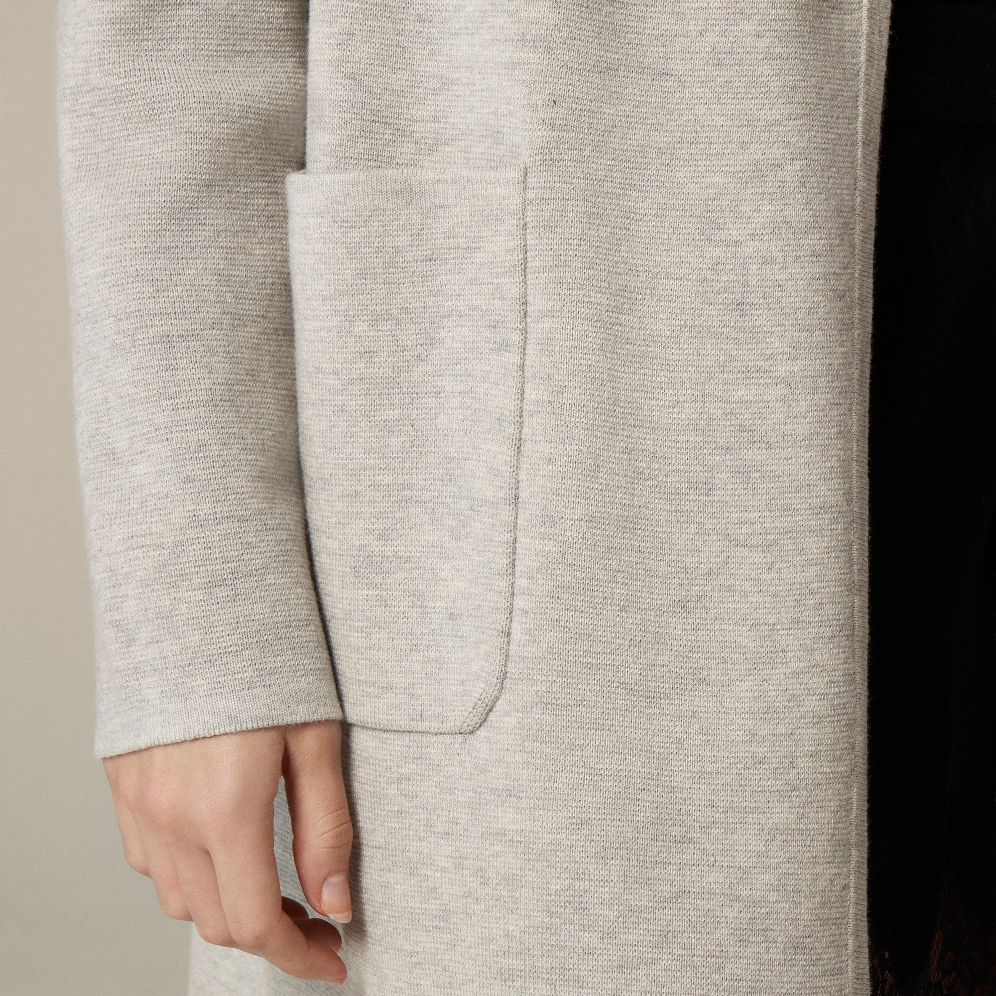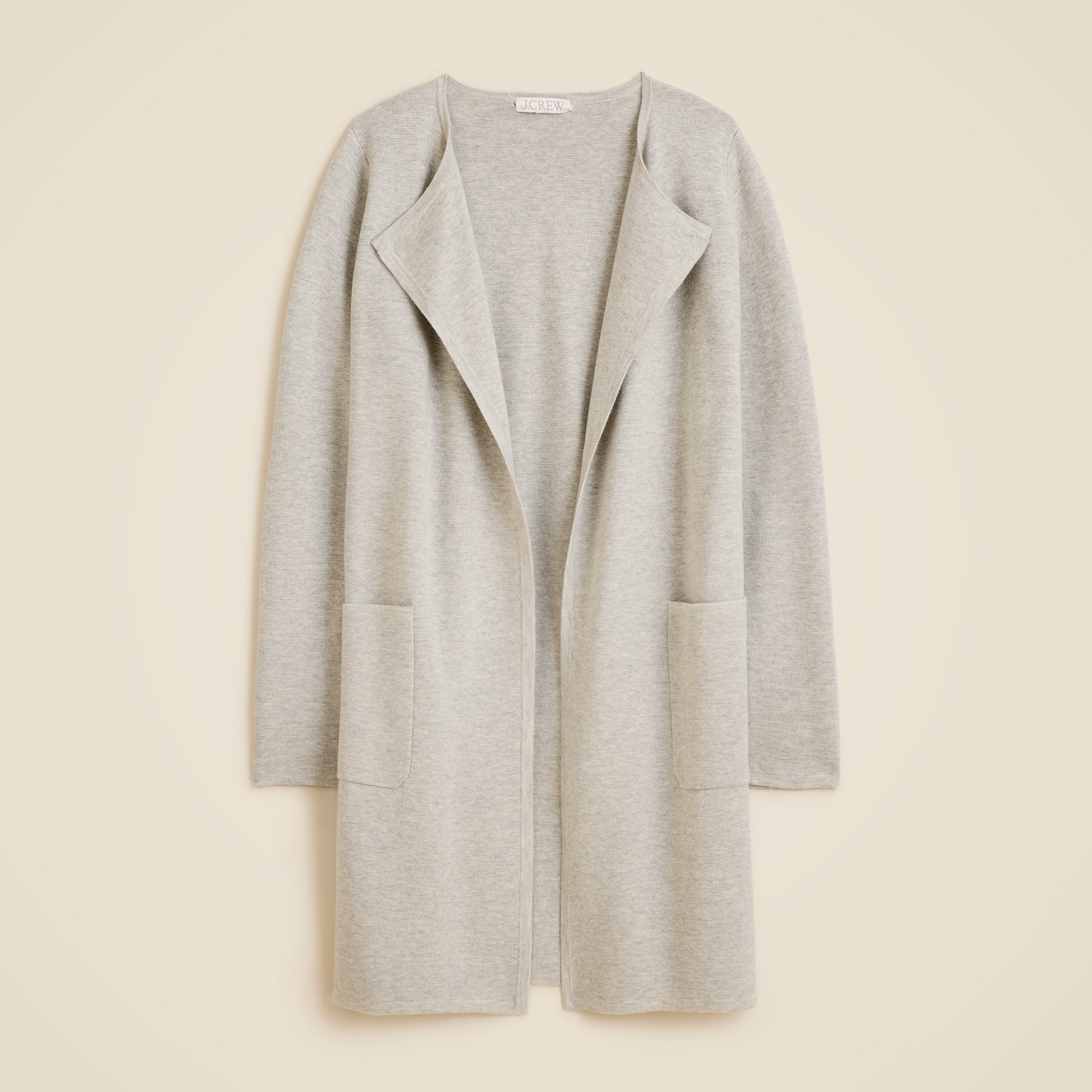 Our new favorite multitasking layer: This features a midlength cut (so yes, it covers your bum), patch front pockets, an open cascading front and cozy knit fabric that toes the line between a cardigan and a jacket. Indoors or outdoors, we bet you wonu0026apos;t want to take this one off.