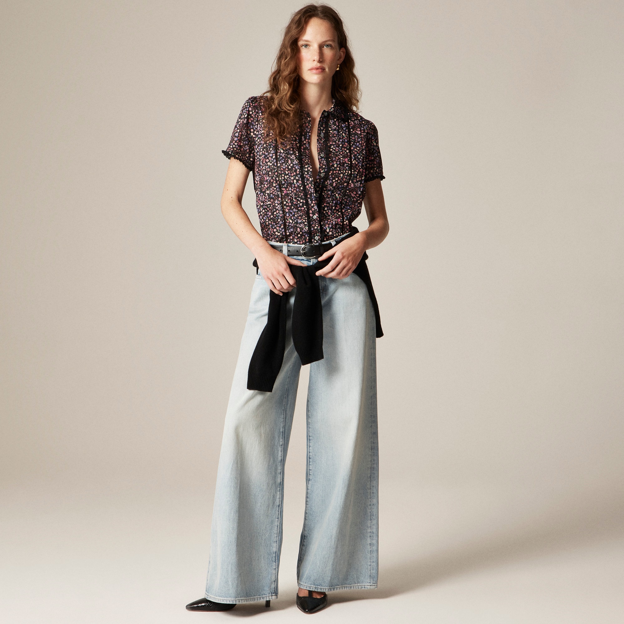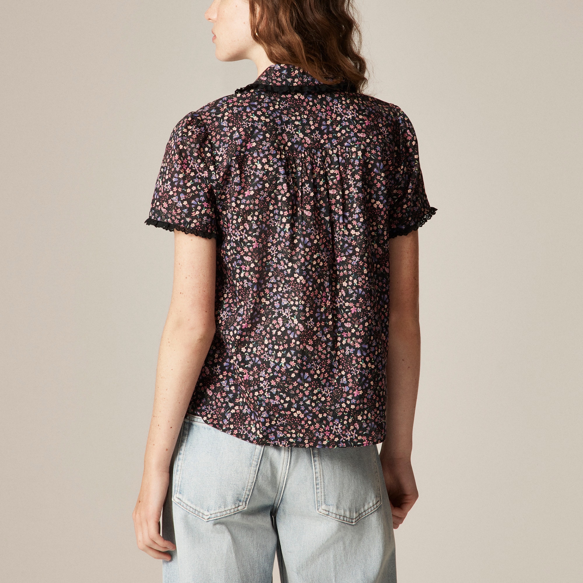 Sheer genius. A dressed-up take on the button-up. This is the prettiest, easiest shirt, thanks to the lace detailing and pretty floral fabric from Liberty London (the famous British print house known for its mood-lifting blooms since 1875).