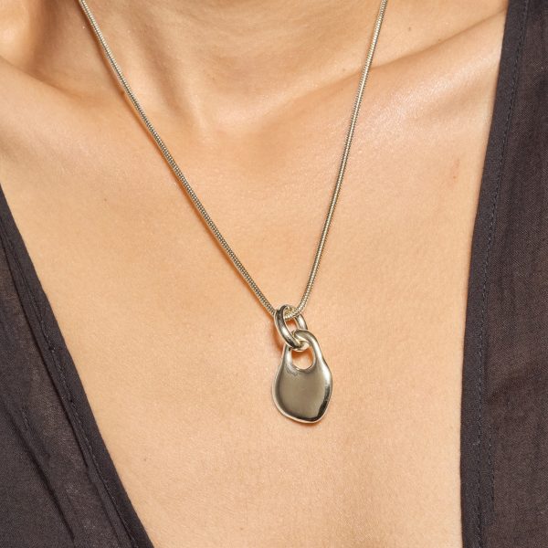 Lady Grey is a New York-based luxury-jewelry brand. Designed and handcrafted by Jill Martinelli and Sabine Le Guyader, the brand is recognized worldwide for its trademark aesthetic and both ethically and socially conscious practices, as well as its influential following. The Addy necklace features a beautifully fluid and organic pendant suspended from a contrasting snake chain. Bold and minimal, this necklace adds cool factor to any look.