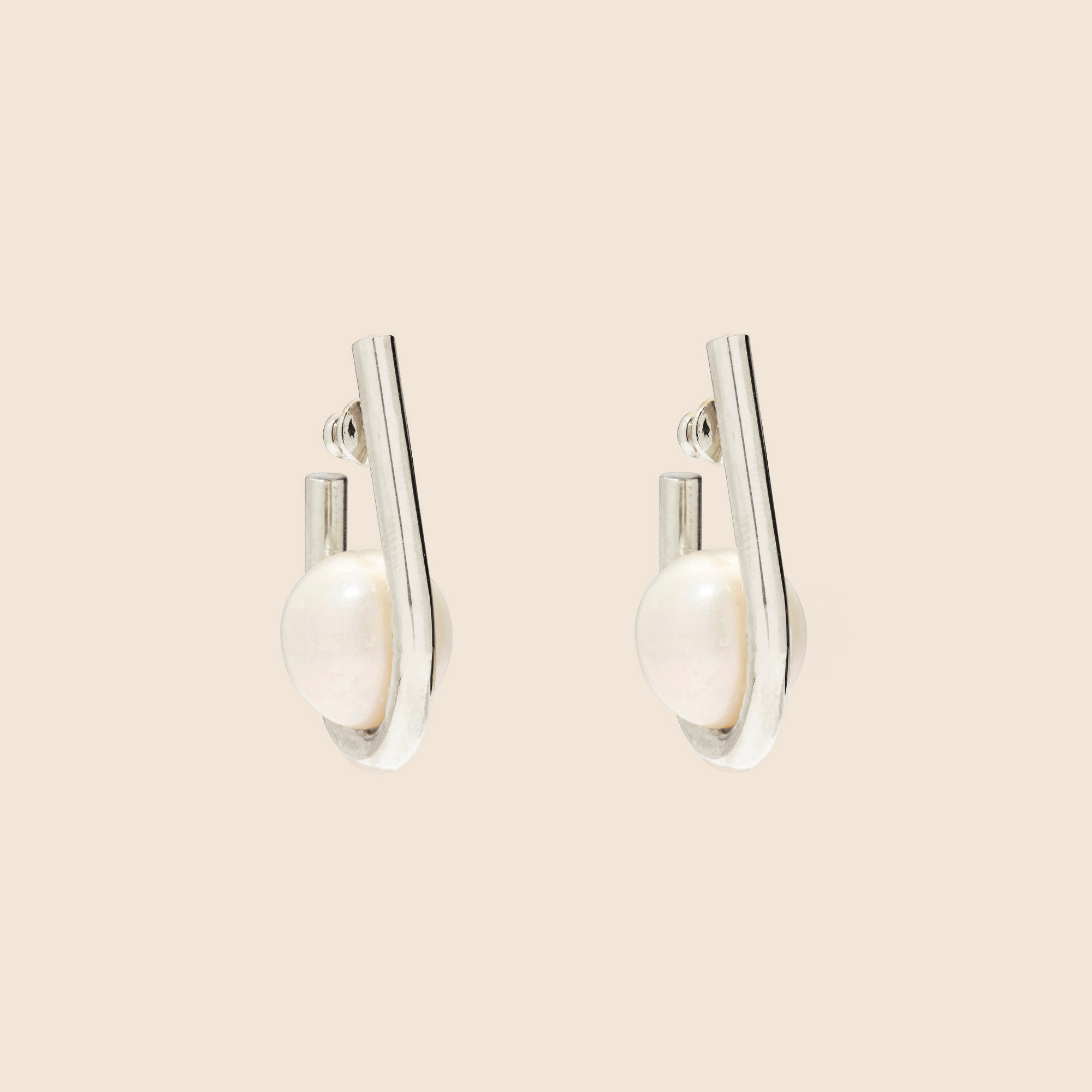 Lady Grey is a New York-based luxury-jewelry brand. Designed and handcrafted by Jill Martinelli and Sabine Le Guyader, the brand is recognized worldwide for its trademark aesthetic and both ethically and socially conscious practices, as well as its influential following. The chaise earrings feature a 12mm white freshwater pearl minimally suspended by a single curved bar.
