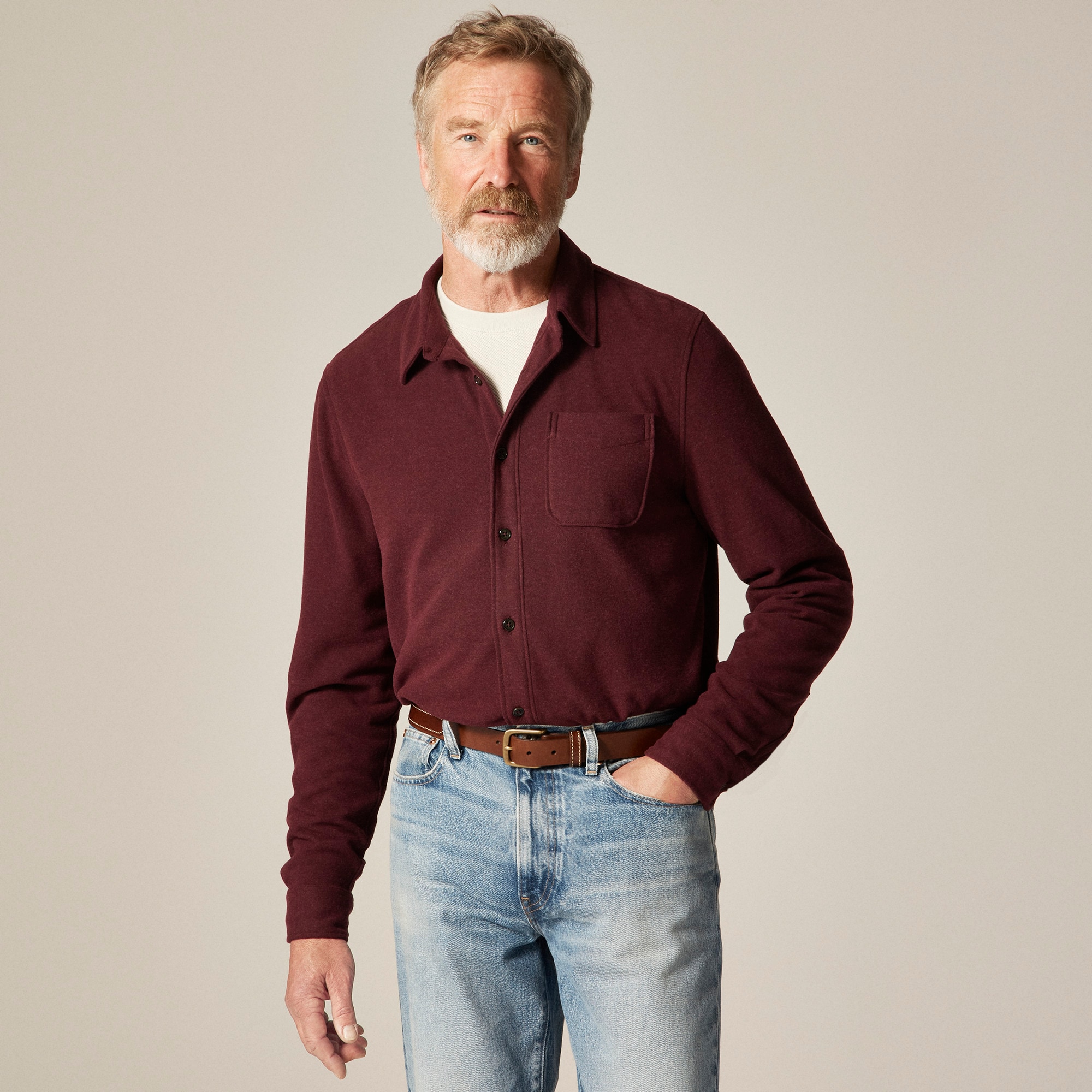 Presenting a study in contrasts: rugged-yet-light, impossibly soft-yet-stretchy. The feel of a sweater, with the look of a shirt. We reworked our customer-favorite Seaboard fabric in a new lighter weight, so you don’t have to wait for peak fall to achieve peak comfort. This fabric gets its incredible feel from being double-knit instead of woven, which gives it built-in flexibility. And if this weren’t enough, we brushed both sides, so it’s even softer inside and out.