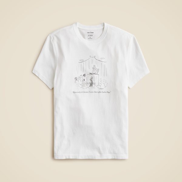 Introducing u003ciu003eThe New Yorkeru003c/iu003e X J.Crew. To celebrate 100 years of u003ciu003eThe New Yorkeru003c/iu003e and its legacy of influential journalism, we partnered on an exclusive collection of heritage J.Crew pieces that capture the spirit and style of the iconic cultural institution. This new T-shirt is everything you love about vintage finds with none of the downsides. It’s perfectly faded with a comfortable, well-worn feel, thanks to our specialized wash process and subtly textured 100 percent cotton (30 percent of which is recycled). The fit is slightly more relaxed than our Broken-in tee with an additional 1u0026quot; in the chest and 3/4u0026quot; in length, which hews closely to coveted old-school styles.