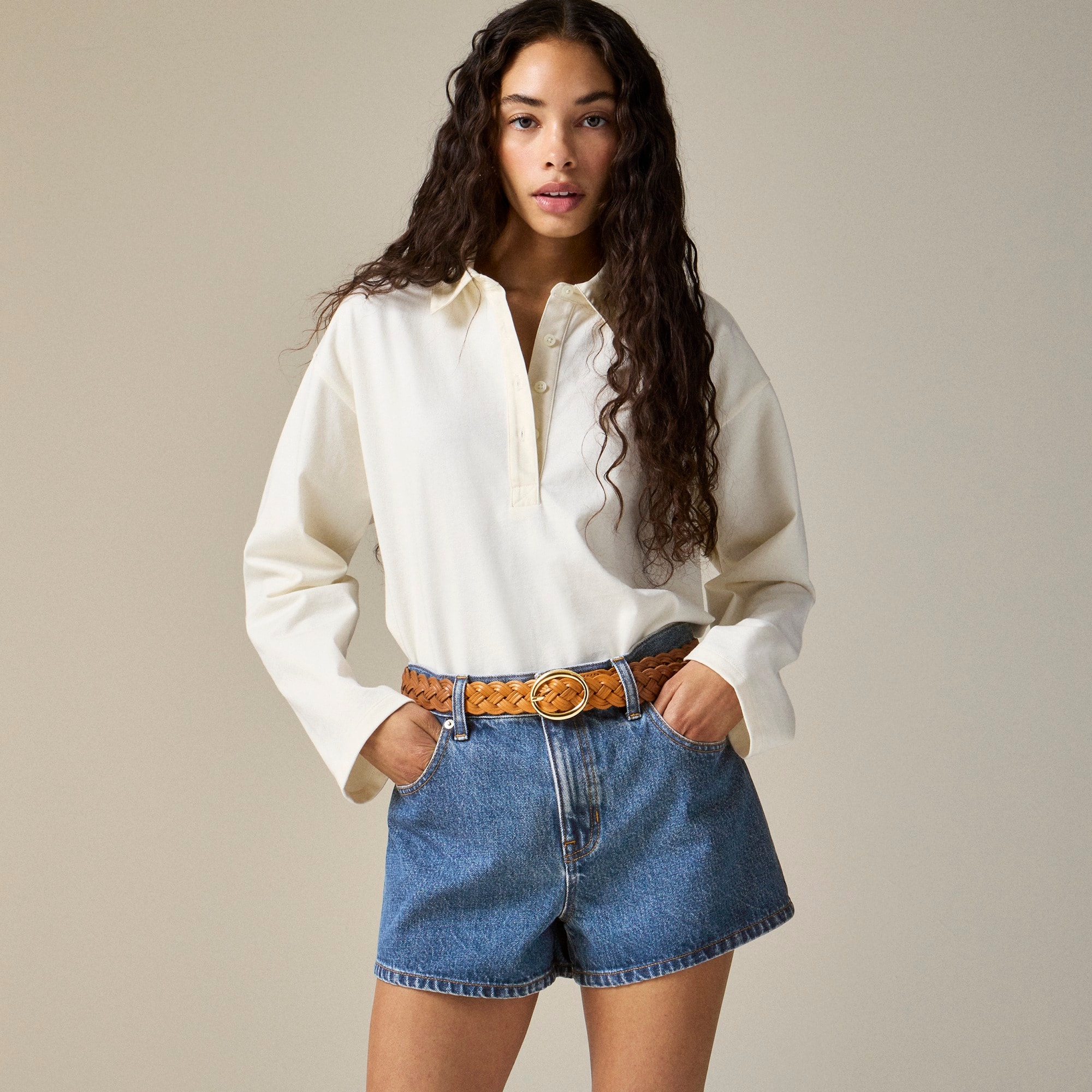 New denim to love. . .Meet the short version of our customer-favorite low-rise wide-leg jeans, featuring the same straight fit and slightly more relaxed leg, just in time for warmer weather. Plus, it’s crafted from 100 percent cotton denim with no added stretch for a vintage look and feel that molds to your shape over time (aka only gets better with every wear). All the cotton we use for this jean is fully traceable to farms that are certified to the standards of regenagriu0026reg;, an agricultural program devoted to encouraging biodiversity, reducing greenhouse-gas emissions and securing the health of the land and the people who live and work there.