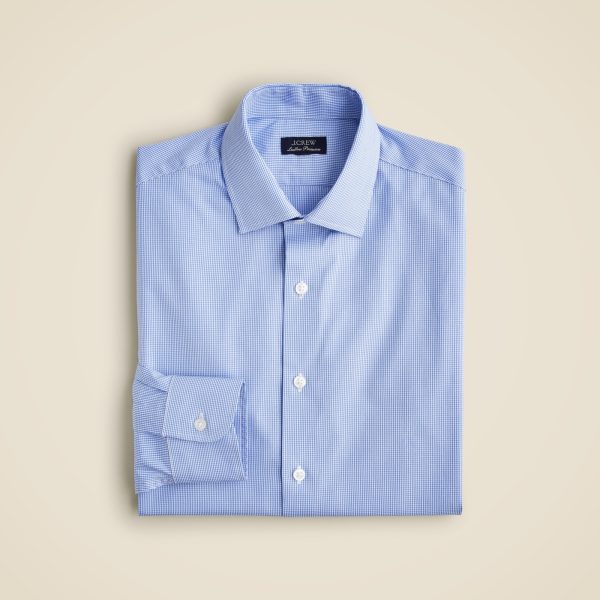 Introducing a premium edition of our best-selling Ludlow dress shirt, designed and crafted for your sharpest days. Woven with fine two-ply 100s yarns in 100 percent cotton for a silky finish and lighter feel, this shirt has all the details you know and love about our Ludlow dress shirt – like a french placket and tailored collar and sleeve sizes. Wear our finest dress shirt with Ludlow pants or a full Ludlow suit for work, weddings and everywhere in between. A tailored fit, cut slim through the body and sleeves.