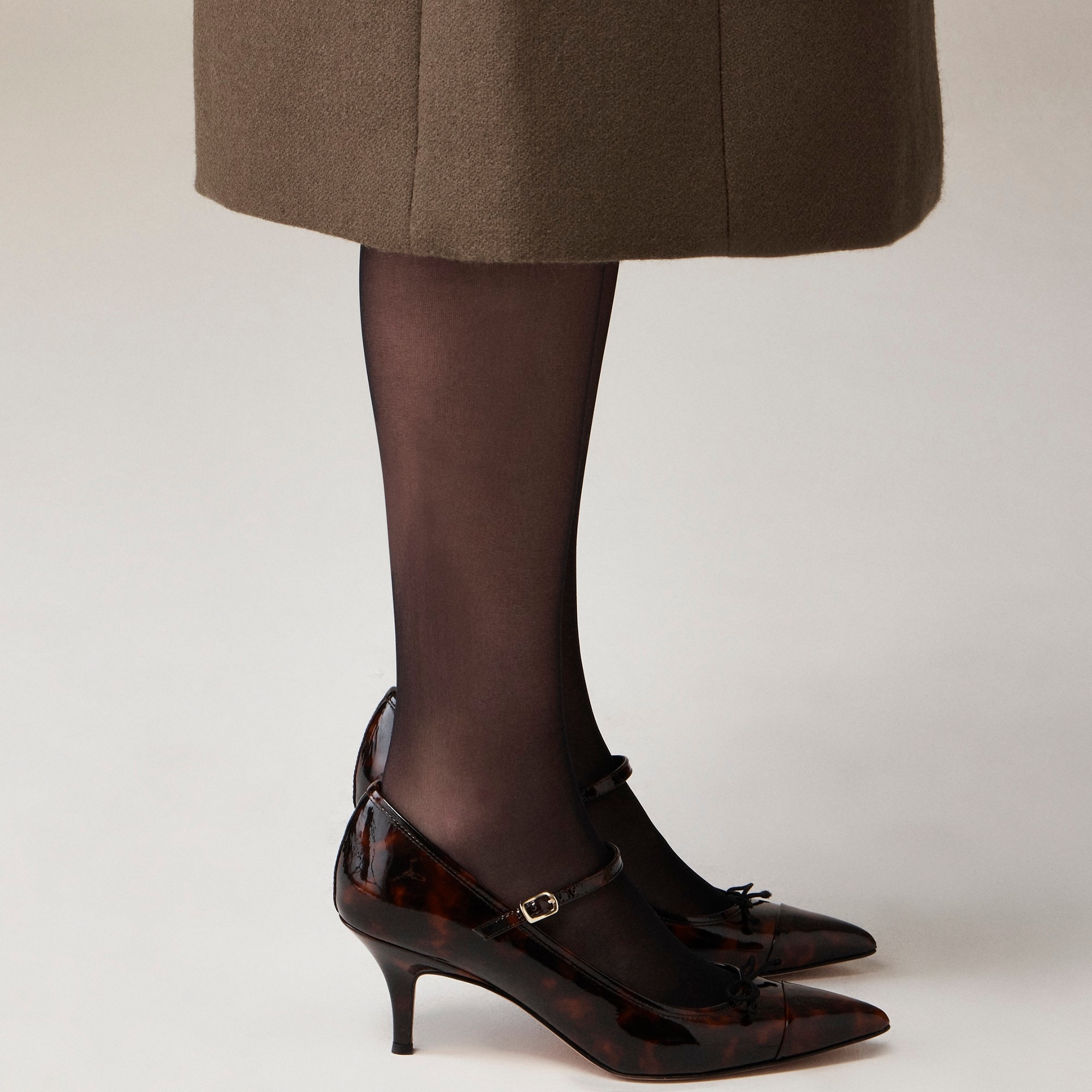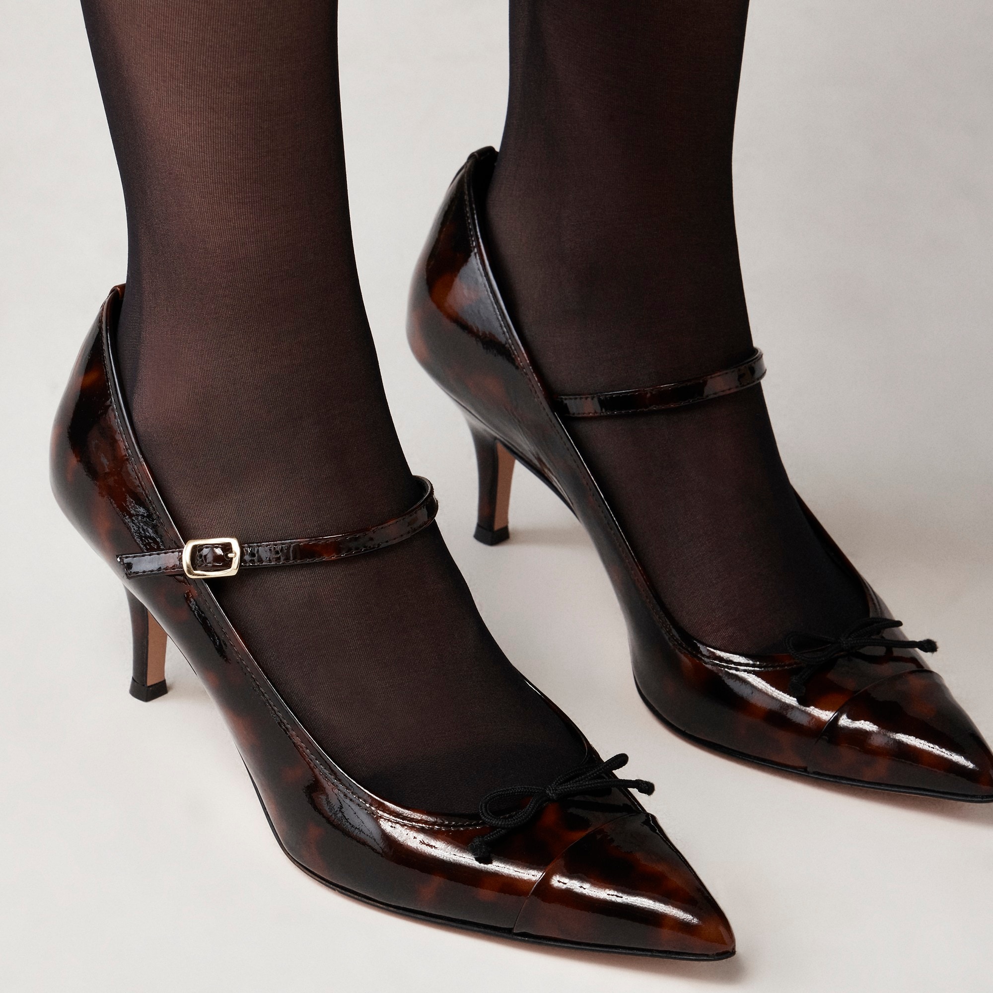 Introducing an elevated new version of our Colette heel. We gave our classic Made-in-Italy heels a feminine twist with ballet-inspired bow details, a subtle cap toe and a sleek Mary Jane strap. Plus, it’s finished in a tortoise-print leather that’s sure to make a statement this holiday-party season.