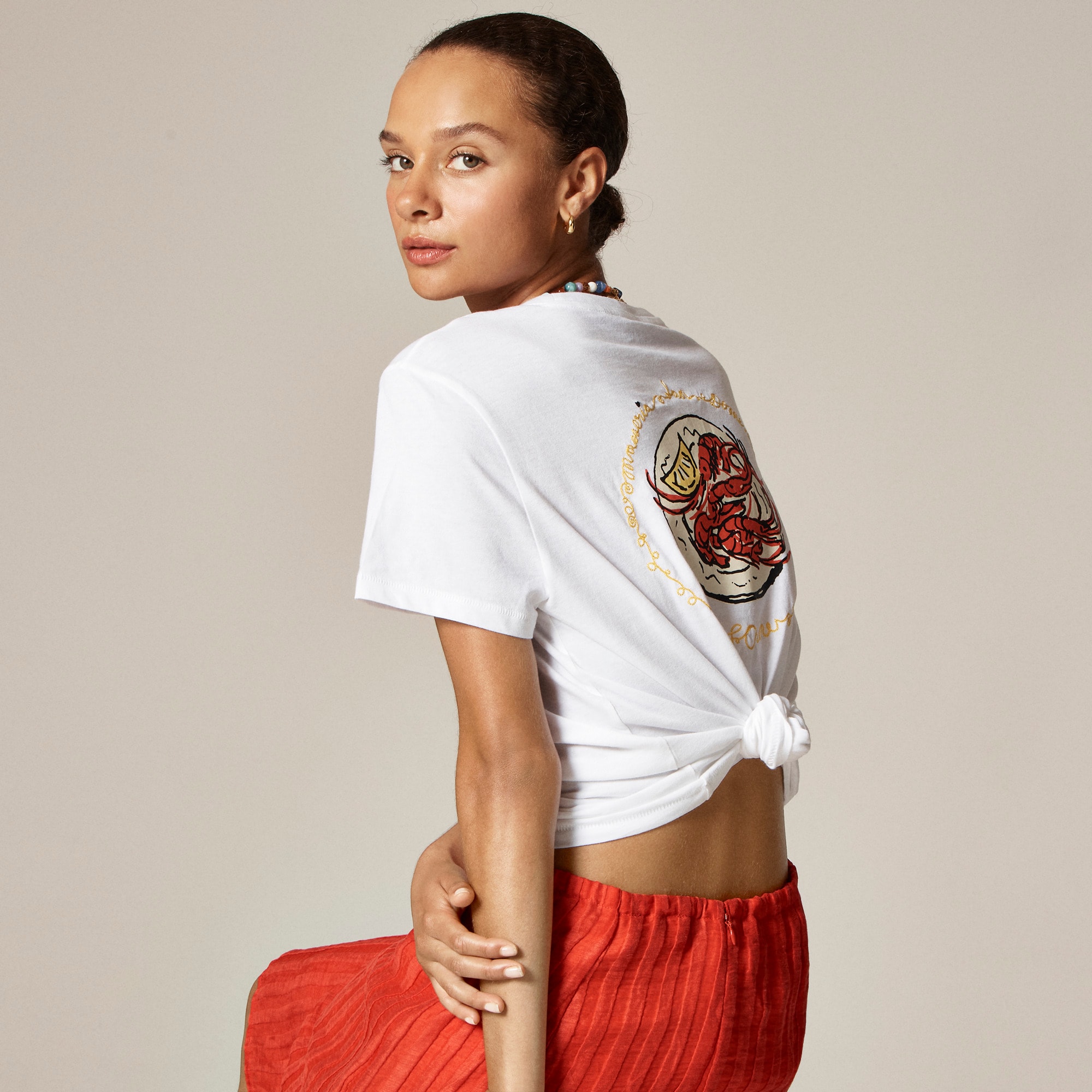 A souvenir from Italy. . .We partnered with Masseria San Domenicou0026mdash;the magical hotel in Puglia where we hosted a few of our friends this summeru0026mdash;on a limited-edition capsule inspired by the sights, style and spirit of the Italian coast. This style comes with a colorful alfresco graphic on the back and an embroidered crest detail on the front. Plus, it’s crafted from our vintage jersey that has a smooth, soft texture that feels lived-in from the very first wear.