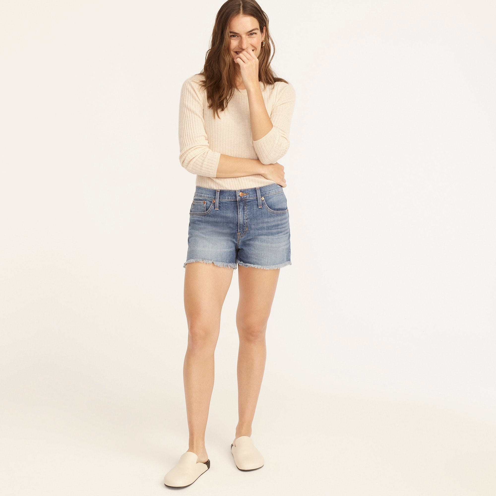 Everyone needs a pair of perfectly-ftting jean shorts. Meet yours. This pair features a classic mid-rise and a raw hem, and premium cotton from Cone Denimu0026reg; (one of the oldest denim mills in the world). By buying cotton products from J.Crew, youu0026apos;re supporting more responsibly grown cotton through the Better Cotton Initiative.