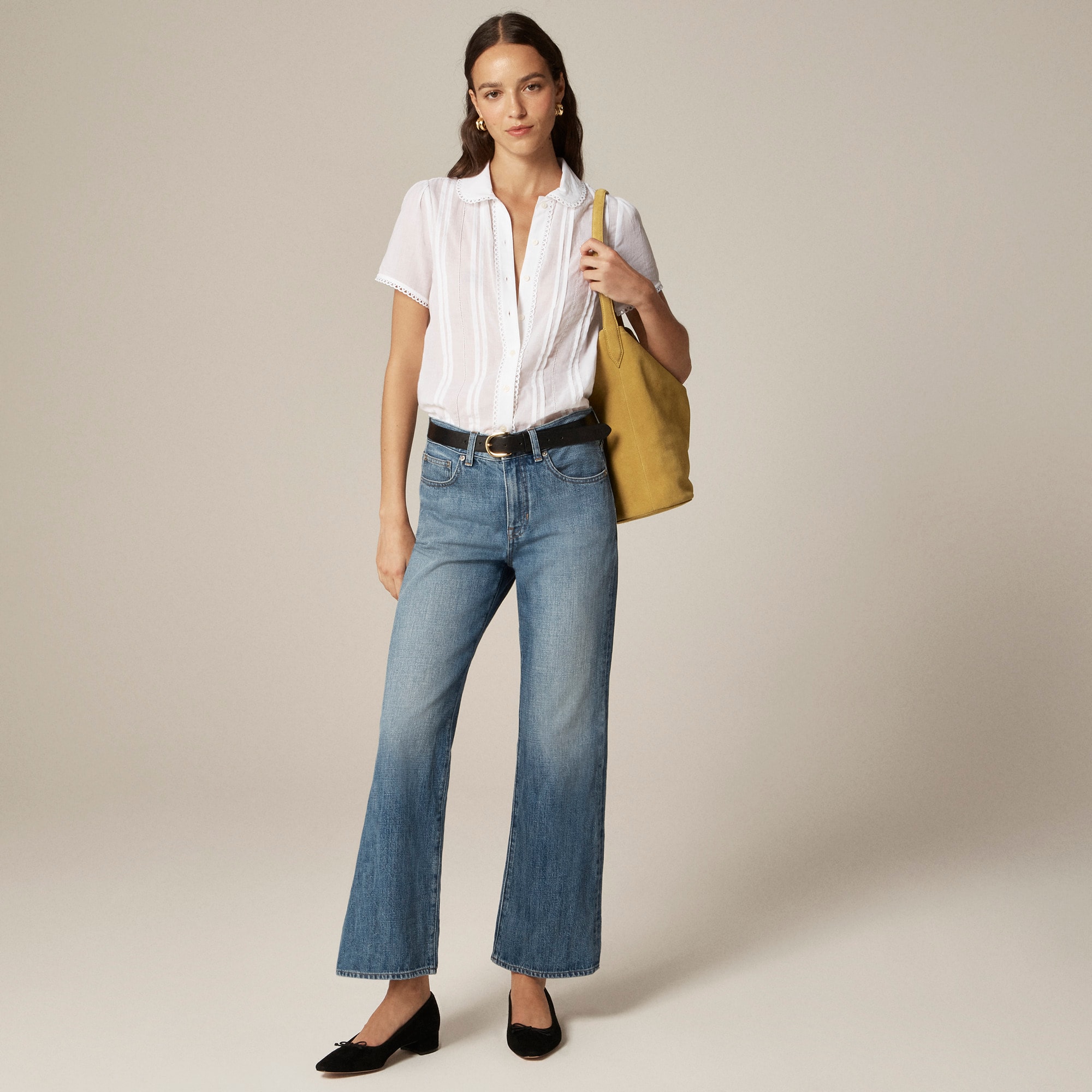 A gently cropped fit with a kicky hem. It’s slim through the hips and thighs and it flares out at the knee for a super-flattering effect. Plus, it’s crafted from 100 percent cotton denim with no added stretch for a vintage look and feel that molds to your shape over time (aka only gets better with every wear).
