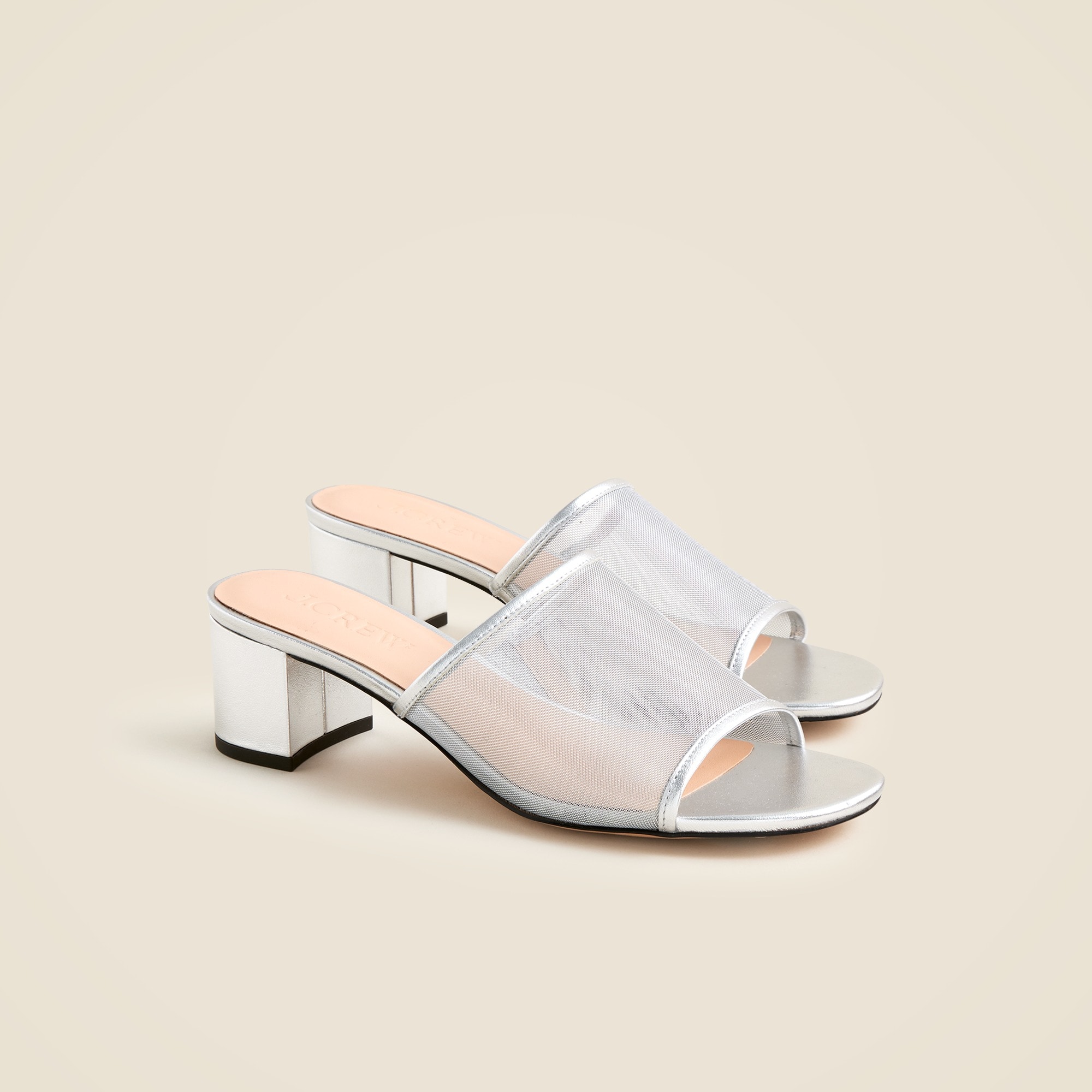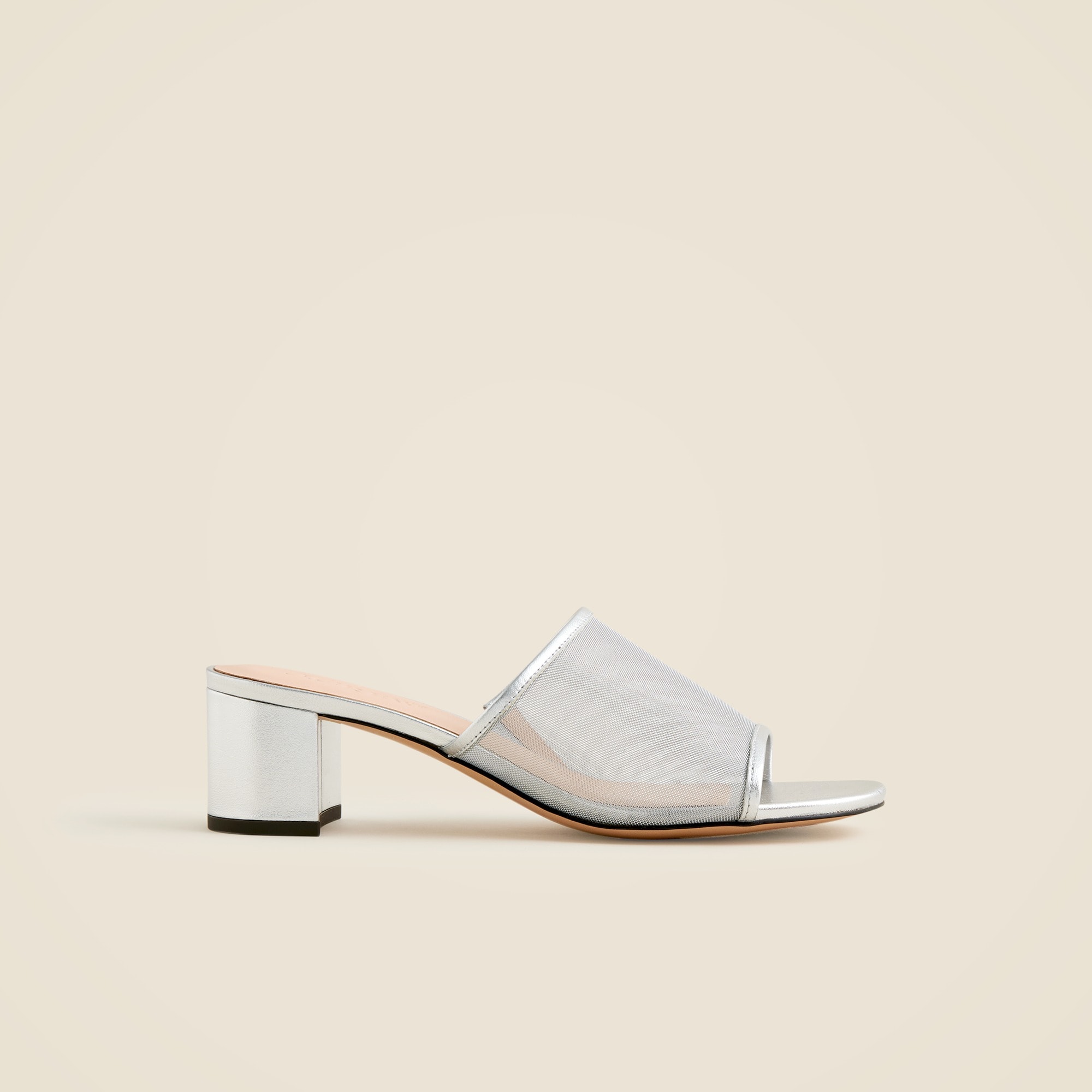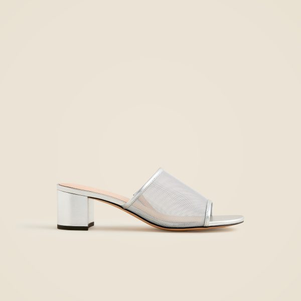 The shoe your summer outfits have been missing. This easy-on, easy-off sandal has a short block heel and metallic mesh upper for just the right amount of shine.
