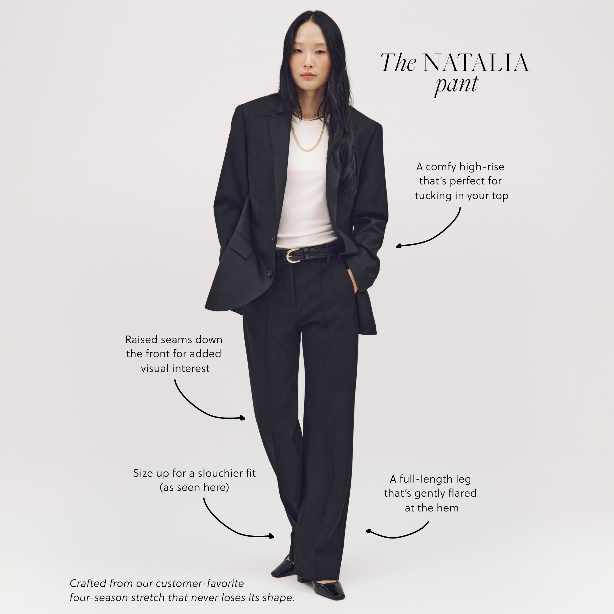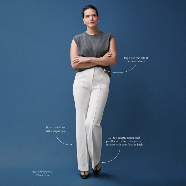 Our latest polished pair, with some added flare. This pant features a comfy high rise, flattering seaming down the front and a gently flared leg. Plus, it’s made with our famous four-season stretch (a super-comfy fabric that never loses its shape).