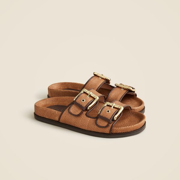 Slide into spring. Our sporty-meets-stylish sandals are back with a supportive molded footbed and padding along the buckle straps for maximum comfort. Bonus: the spring-ready faux-raffia finish.