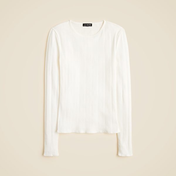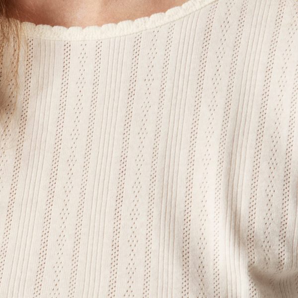 Subtly shrunken and intricately detailed, in 100 percent cotton. It comes with long sleeves, a classic length and a close fit all the way through, plus scalloped trim at the edges and dainty panels of pointelle stitching.