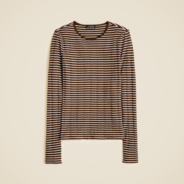 Subtly shrunken and intricately detailed, in 100 percent cotton. It comes with long sleeves, a classic length and a close fit all the way through, plus scalloped trim at the edges and dainty panels of pointelle stitching. Wear it on its own or under our pointelle cardigan for a matching moment.