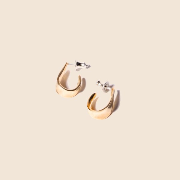 Launched in 2006, Odette New York is a New York-based jewelry studio known for its signature sculptural pieces as well as one of a kind limited-edition collections. Former fine artist Jennifer Sarkilahti carefully carves each design by hand into wax before casting it into various metals. The perfect lightweight tapered hoop earrings in glossy brass, hand-sculpted in wax before being cast in recycled brass.