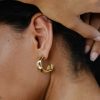 Oversized sculptural hoops, hand-formed from wax before being cast in recycled brass. Launched in 2006, Odette New York is a New York-based jewelry studio known for its signature sculptural pieces as well as one-of-a-kind, limited-edition collections. Former fine artist Jennifer Sarkilahti carefully carves each design by hand into wax before casting it into various metals.