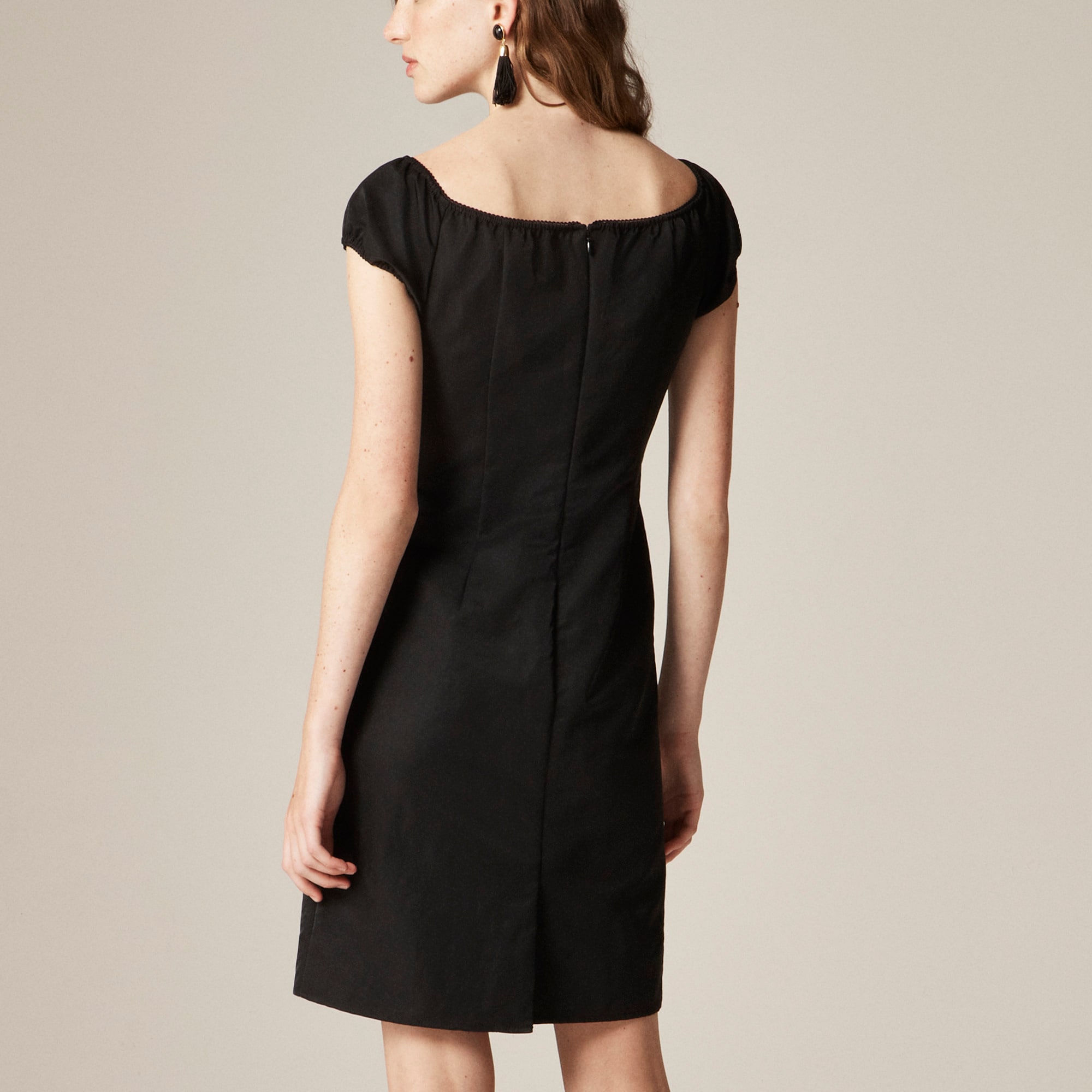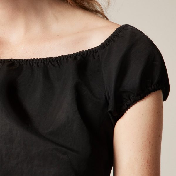 A romantic silhouette that’s as versatile as it is elevated. It comes with off-the-shoulder sleeves and subtle scallop-trim details along the neckline and hem. Plus, it’s crafted from a new textured fabric, which has a natural crinkle and a cool dimensional effect.